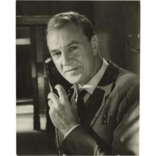 <B>Gary Cooper Signed Photo.</B></I> A b&w 8" x 10" photo inscribed and signed by Cooper in blue ink. In Excellent condition with minimal wear.<BR><BR><b>Shipping:</b> Flat Material, Small (<a target="_blank" href="http://www.heritageauctions.com/common/shipping.php">view shipping information</a>)