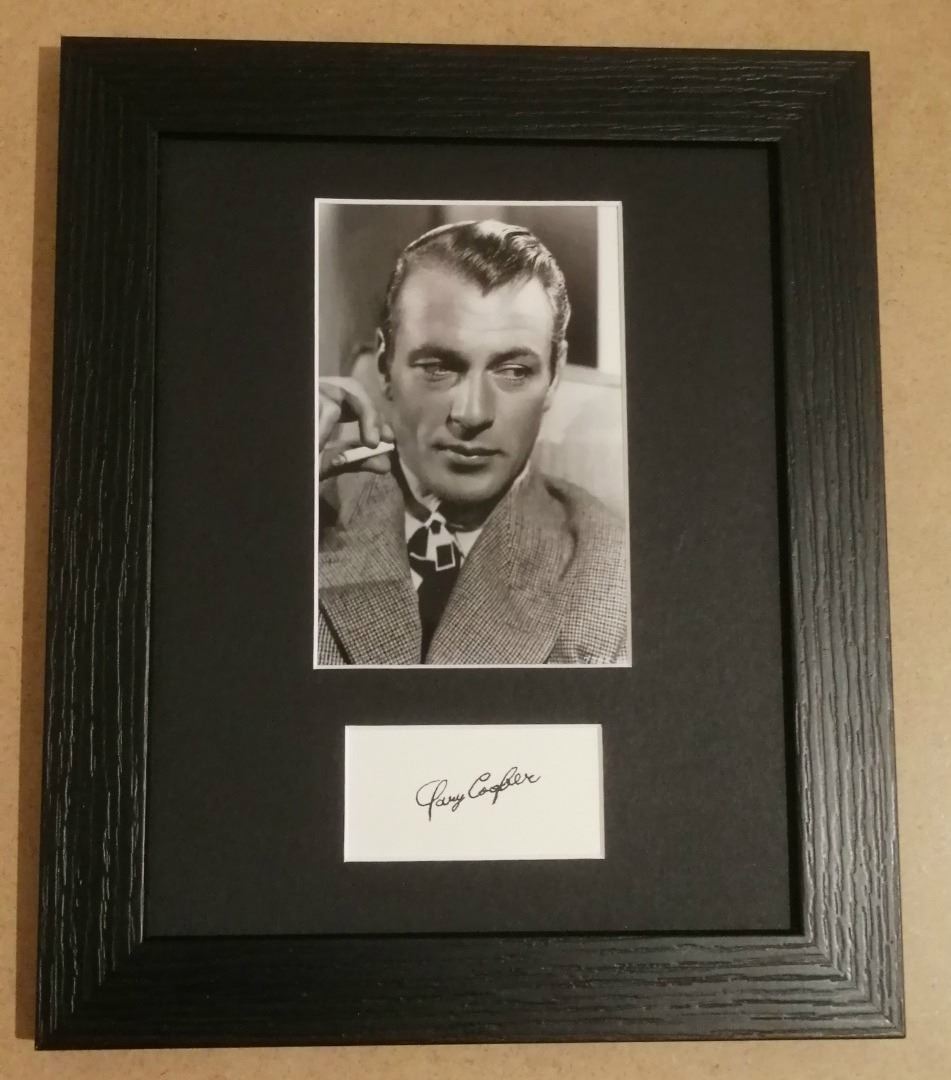 Gary Cooper signed autograph, mounted and framed. Supplied with coa.
