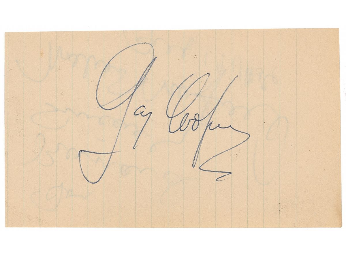 Vintage ballpoint signature on an off-white 5.25 x 5 lightly-lined slip. In fine condition, with light show-through from writing on the reverse, and trimmed edges.