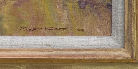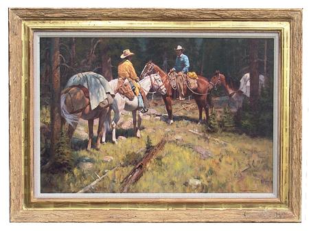 Circa Late 1900s, Signed original oil on canvas - "Meetin' on the Trail." 24" x 36" (32" x 44") From the Towne Collection.