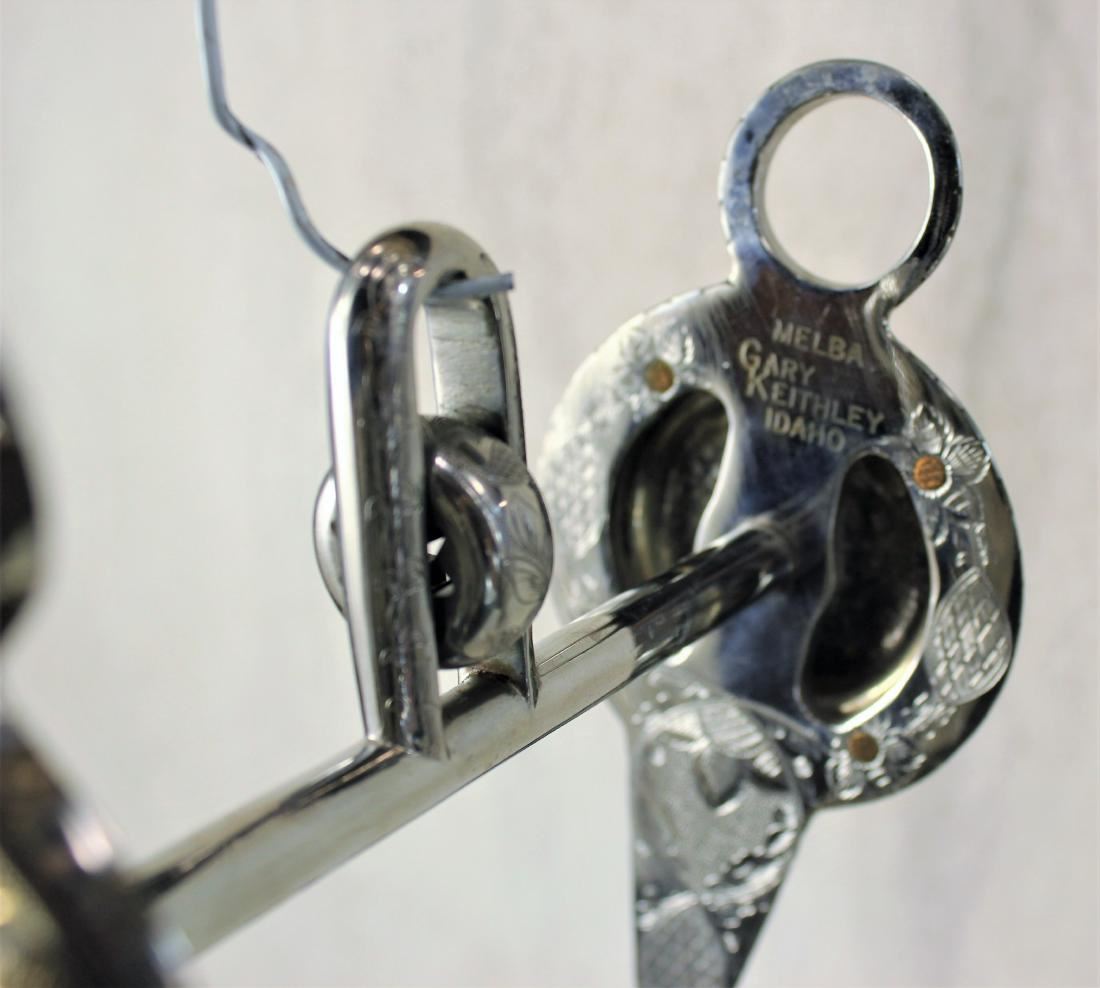 Impressive large madallion half breed bit with detail engraved silver and fantastic custom made rein chains.