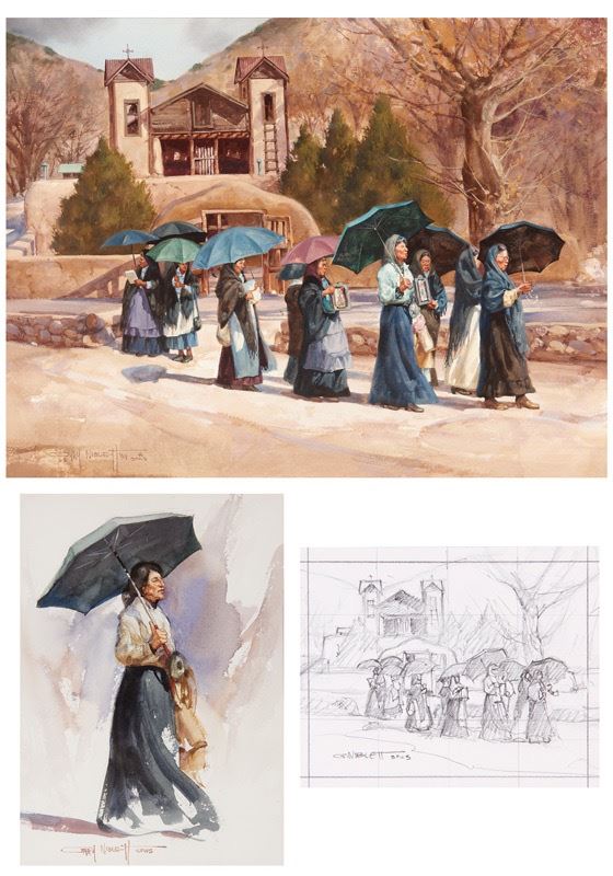 Signed l/l: Pilgrimage of Faith- 'Gary Niblett '94 SFWS CA' l/l Main figure of procession- Gary Niblett SFWS l/l Preliminary Sketch- G. Niblett SFWS l/l