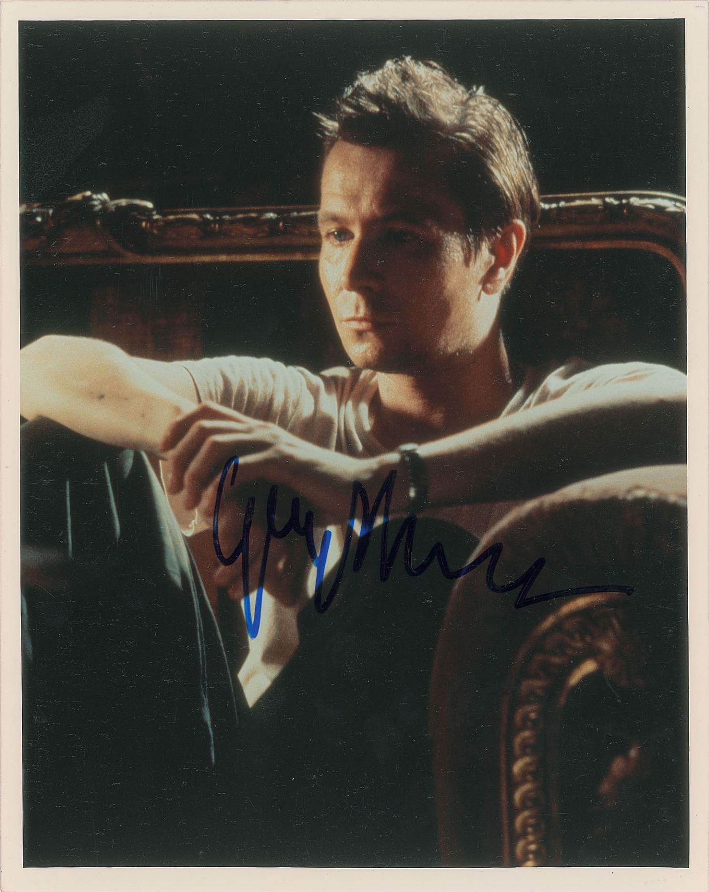 Color glossy 8 x 10 photo of Gary Oldman as the assassin Lee Harvey Oswald in Oliver Stone's 1991 film JFK, signed in blue felt tip by Oldman. In fine condition.