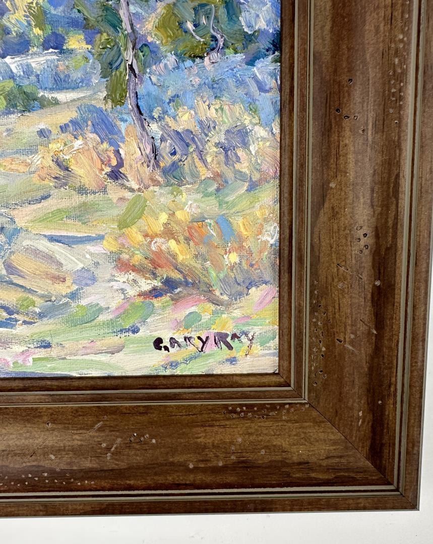 9" by 12" unframed, 13" by 16" framed. Gary Ray was born in Venice and is a 4th generation Californian. Primarily self taught, some of his greatest artistic influences have come from the works of Edgar Payne, and Hanson Puthuff. Ray paints plein-air images of the Southern and Central California coastal regions and inland areas. Being a working, traveling drummer since the age of 18, he has had the opportunity to tour the great cities, and museums of Europe. This exposure has had an influence on his artistic outlook. Ray is also heavily involved in Arts and Crafts collecting, and restoration of various Arts and Crafts items. Ray has exhibited widely in Southern and Central California.