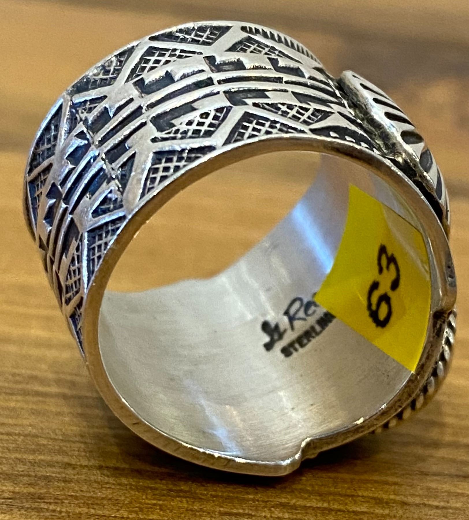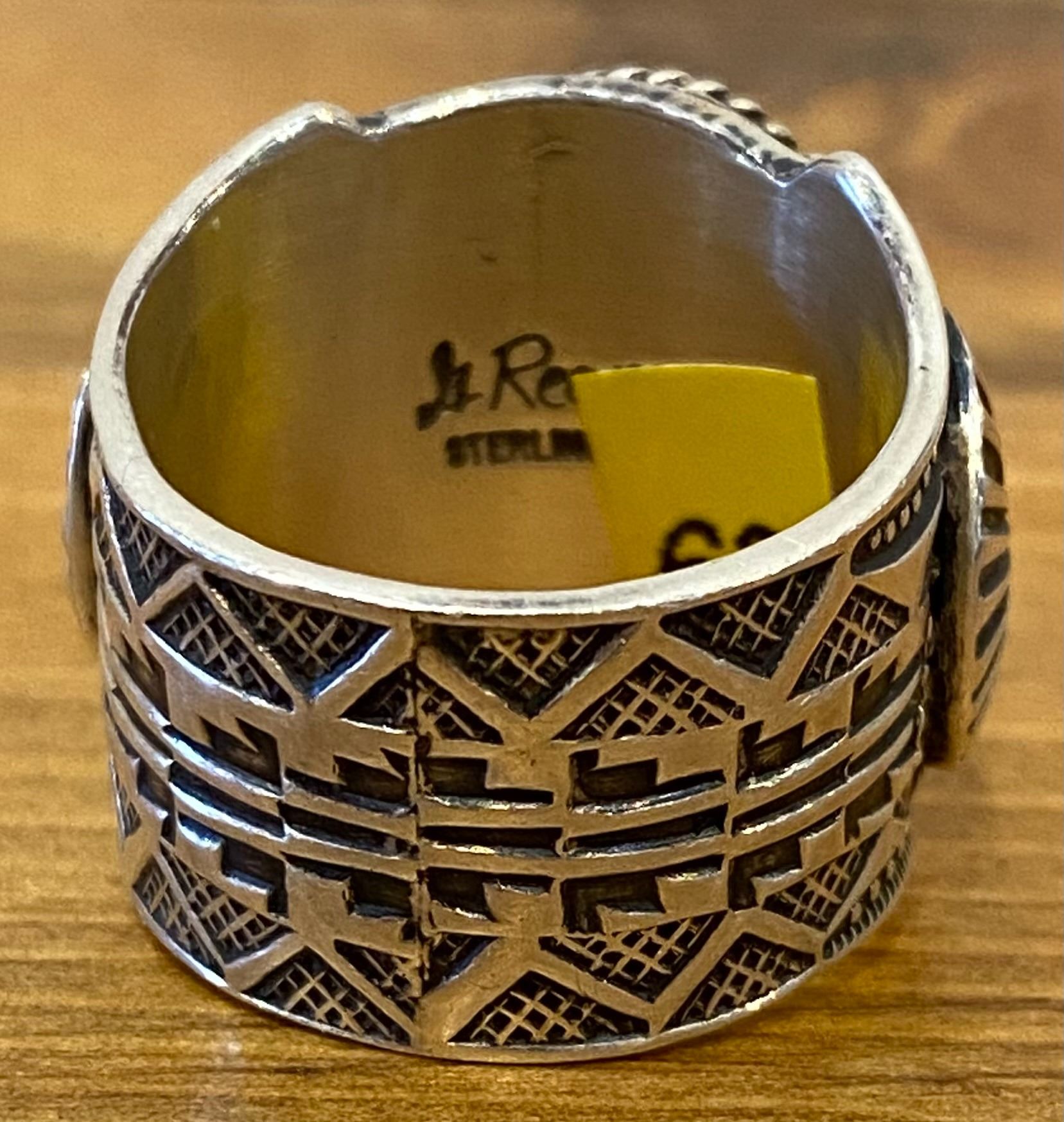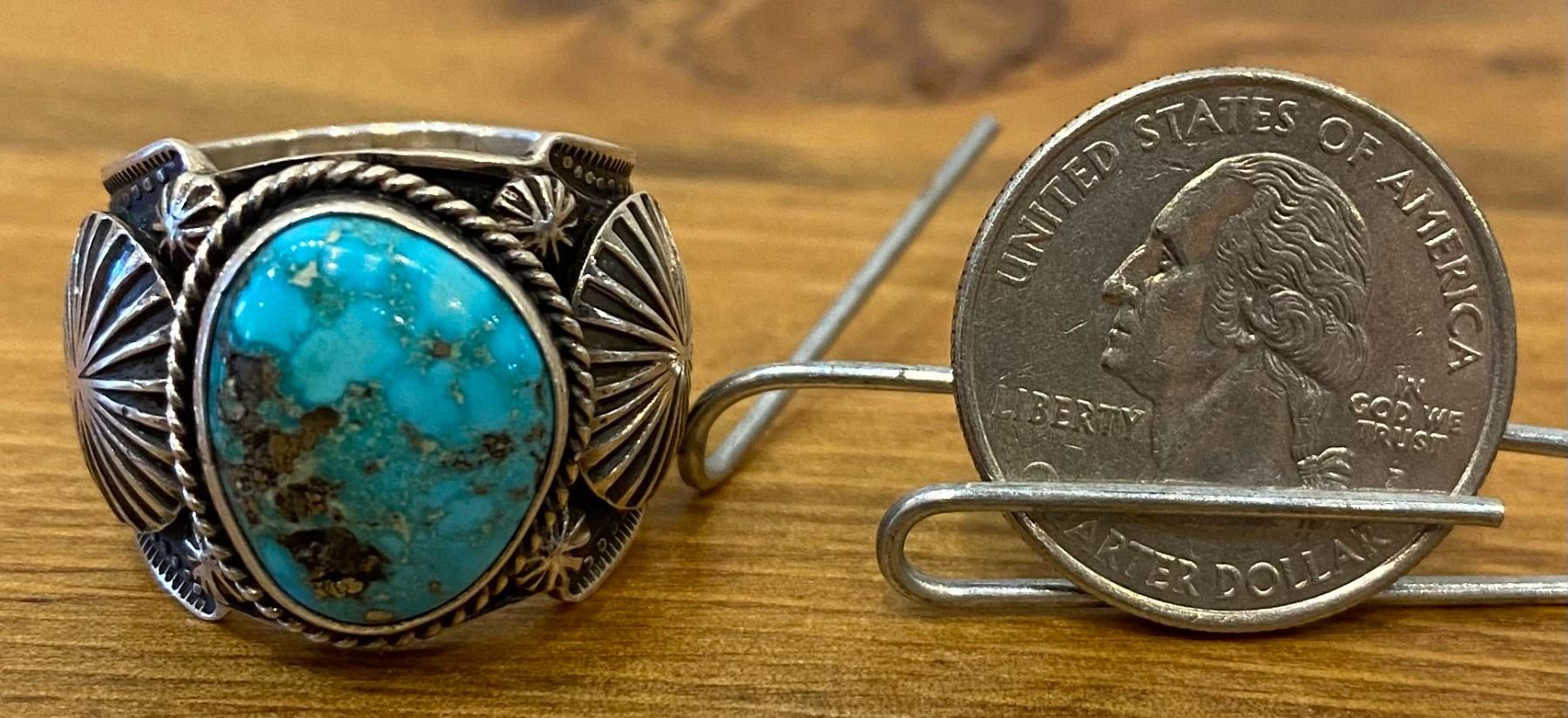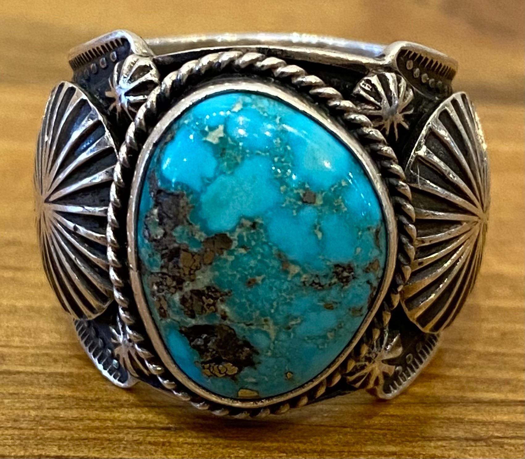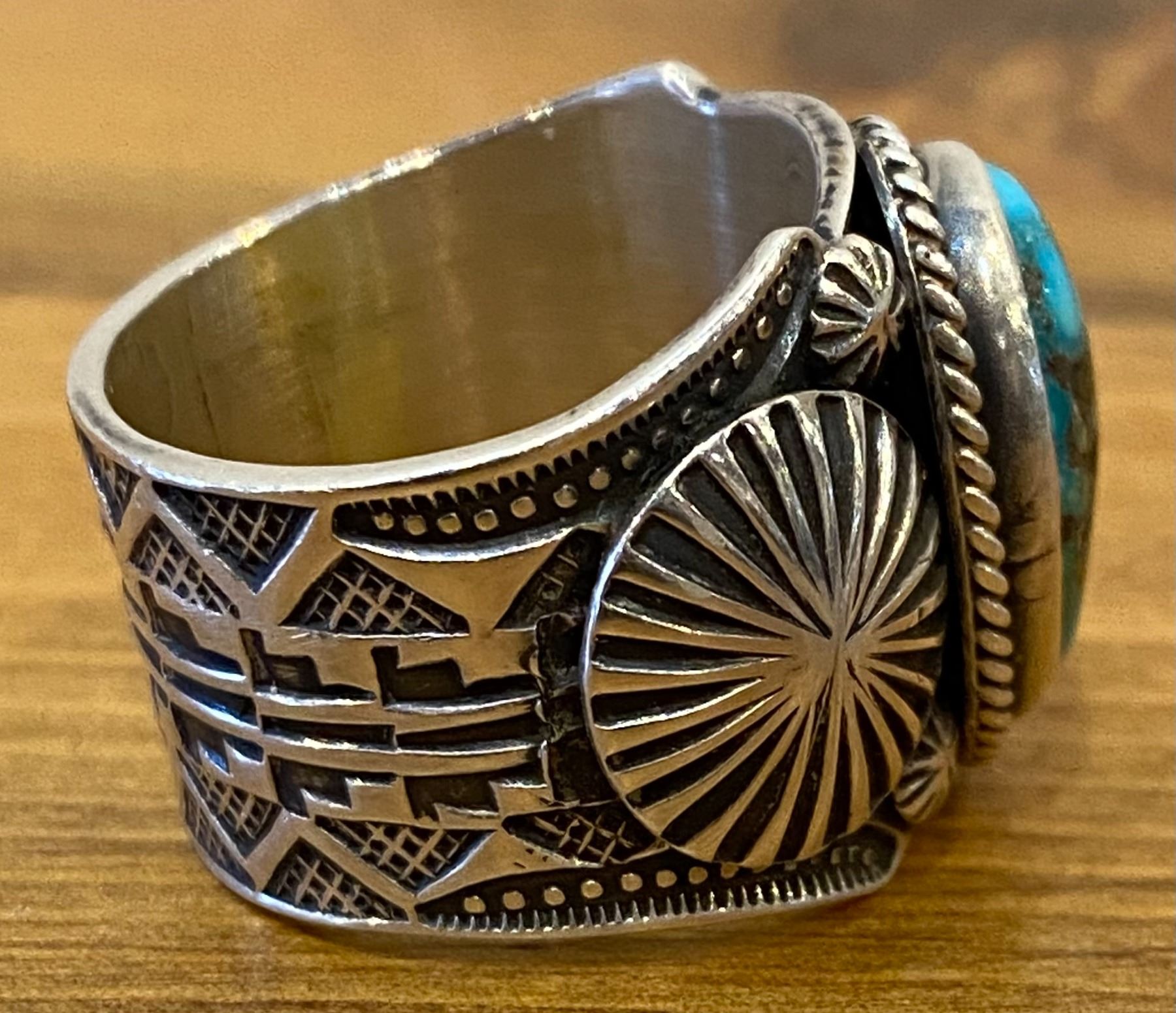 Gary Reeves spider web Kingman turquoise stamped ring Incredible silver stamping and embellishment