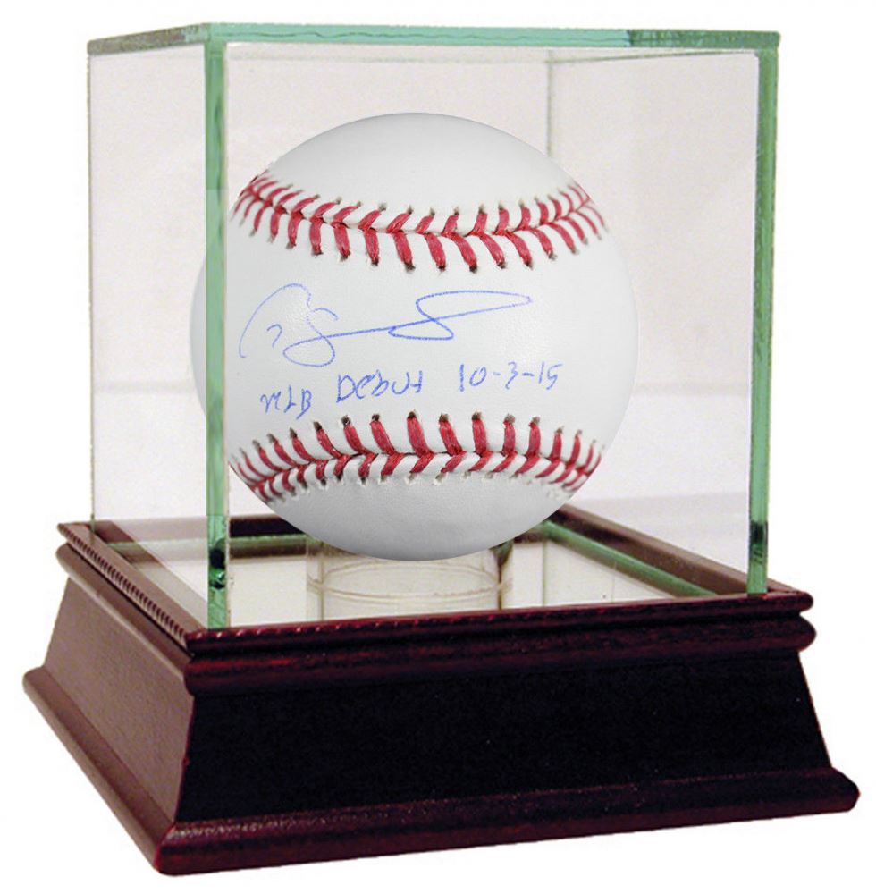 New York Yankees rising star has hand signed this baseball. Pictured is a stock photo of the ball in a case. The case is not included as part of this auction but can be purchased for an additional $10. This baseball comes complete with the Steiner Sports certificate of authenticity and tamper proof hologram. This ball also comes with MLB authentication.