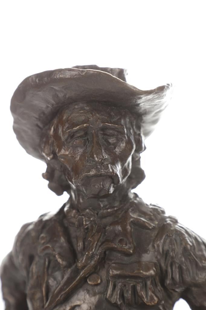 This is an original work of art bronze sculpture circa 1974 of General George Armstrong Custer by renowned master artist Gary Joseph Schlidt (1938-2021) from Montana. The bronze is a nice large size with one of the finest heavy solid bronze work of the iconic western legend General George Armstrong Custer posing with his hand on his hip and a pair of binoculars in his hand with his sword hanging from his waist in his scabbard known for Custers Last Stand at the Battle of the Little Bighorn, also known as the Battle of Greasy Grass. Gary Joseph Schildt is a member of the Montana Blackfeet Tribe and has participated in the C.M. Russell Auction In Great Falls, Montana numerous years. In addition, he is a founding member of the Northwest Rendezvous of Art group. Schildt is an accomplished artist with notable works in oil, watercolor and bronze. The bronze features the artist signature and the date created on the base of the sculpture. The condition of this bronze statue is good with no obvious signs of damage and in good overall condition. The measurements of this bronze statue are 17" x 7" x 4".