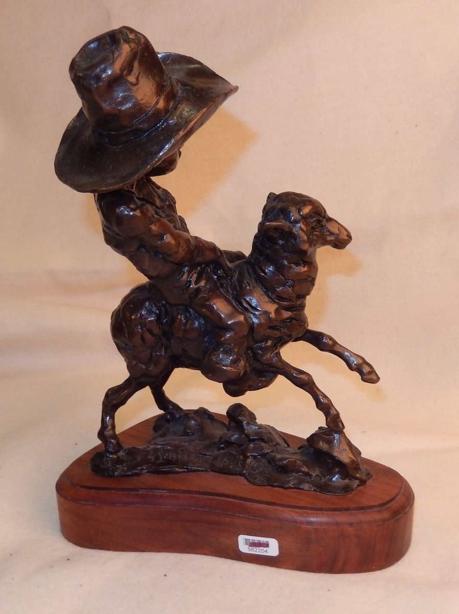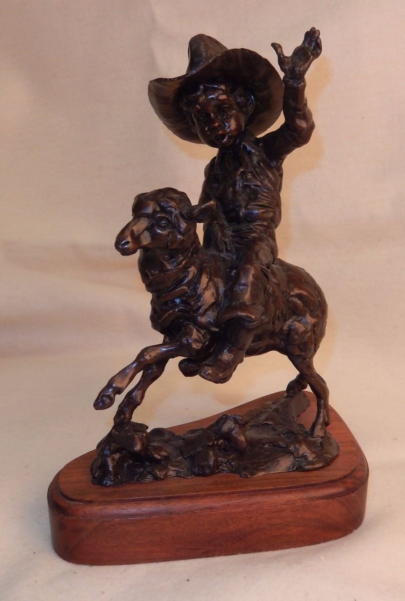 Lamb rider, 7" x 5" x 11" plus base, Signature in casting, 3/35, 1985, -562204-