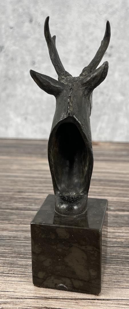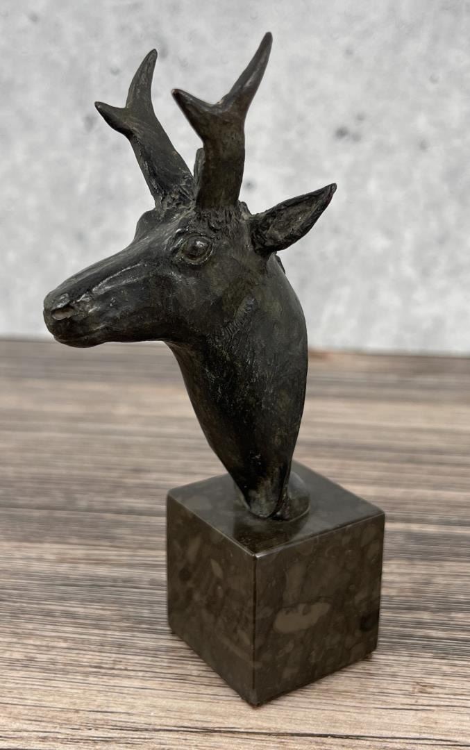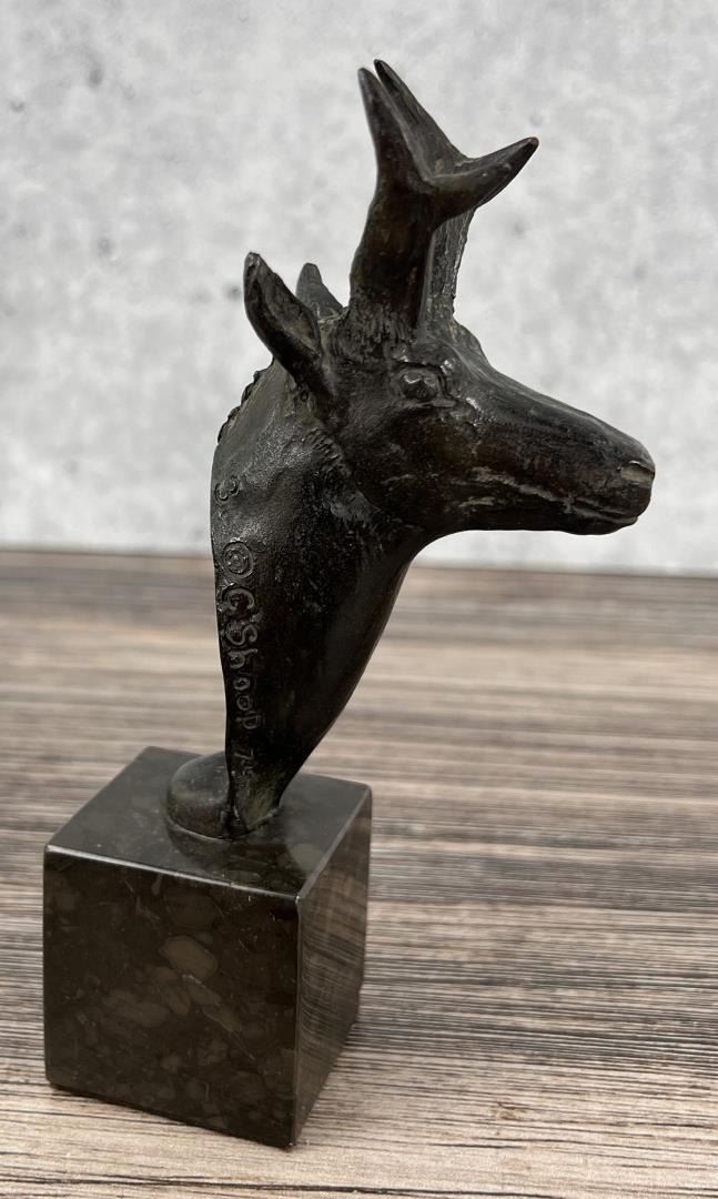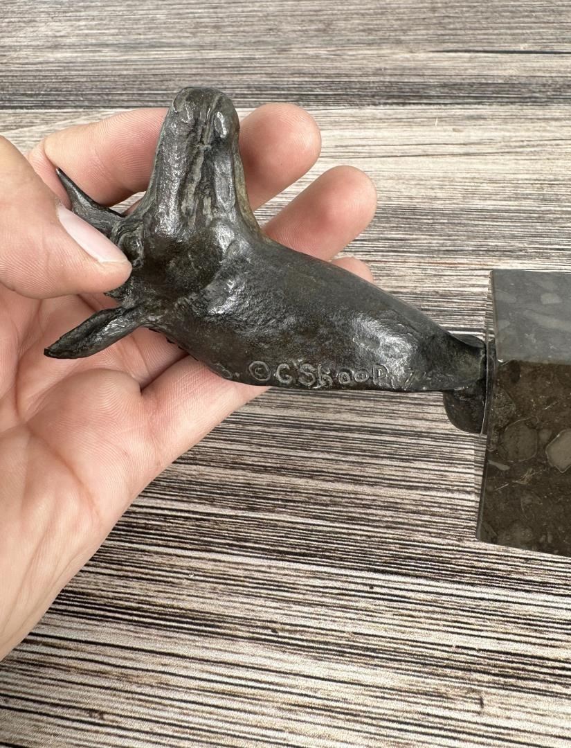 6" tall, 3 1/8" long, 1 3/4" wide. Gary Shoop (20th century) was active/lived in Wyoming. Gary Shoop is known for Sculptor-horses and wildlife. Living near Riverton, Wyoming in an old log homestead house for a studio, Gary Shoop has been a sculptor in bronze since the 1970s. His favorite subject is horses, but he also does other animals and sometimes includes people. Shoop began as a painter, but has been sculpting for 30 years when he met and worked for noted sculptor Harry Jackson. He worked with Jackson for nine years and this allowed him to make several working trips to Europe. There he was able to participate in the process of lost wax bronze casting and to study the art of the Old Masters. He works in many sizes from life-size to miniature.
