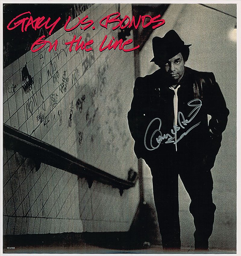 Glossy 11 x 11.75 cardstock photo of his On the Line album cover, signed in silver ink. In fine condition.