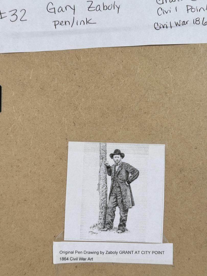 Title is Grant at Civil Point. 10" by 14" unframed. 12 1/2" by 15 1/2" framed. Gary Zaboly (late 20th century) was active/lived in Texas. Gary Zaboly is known for Painting.