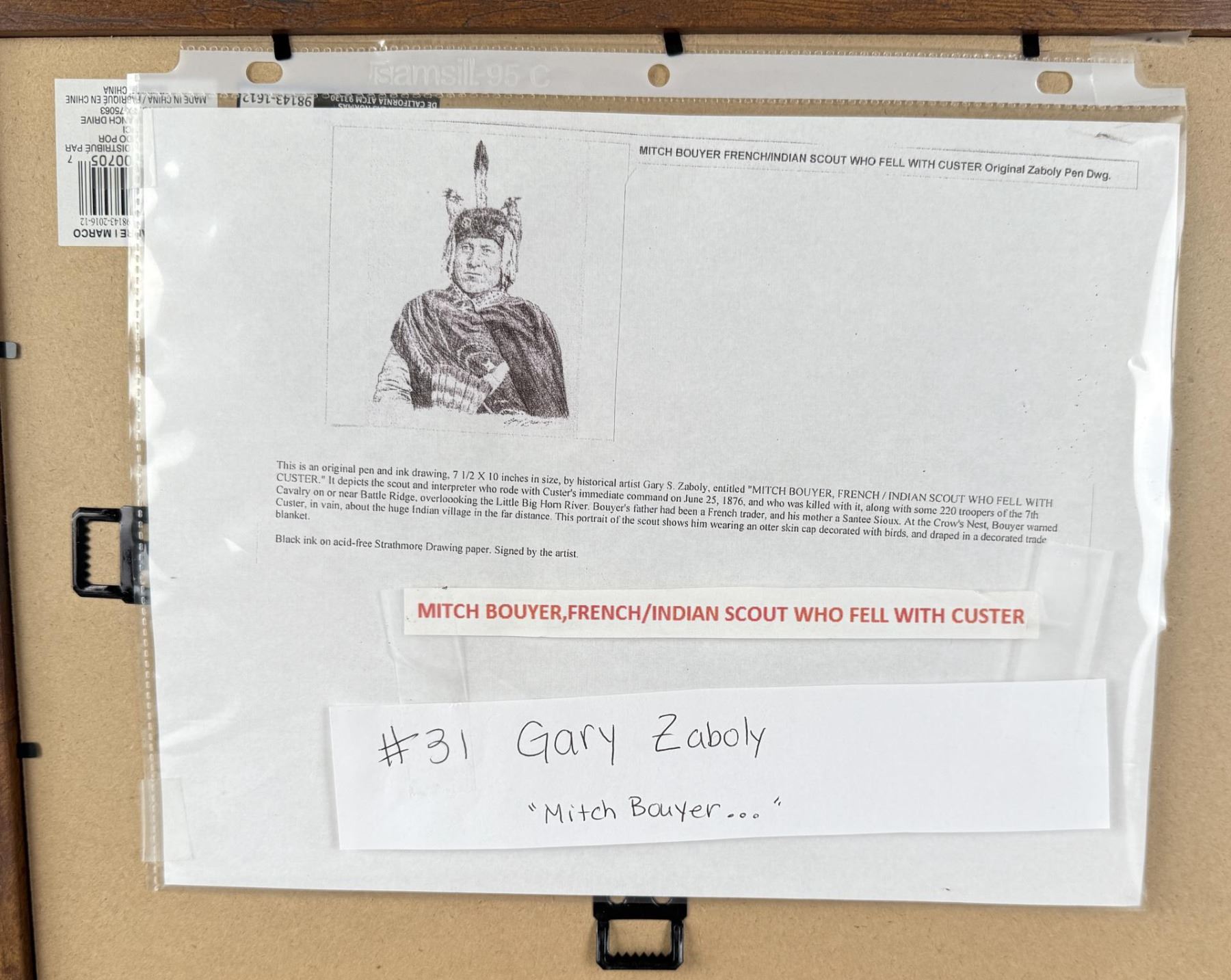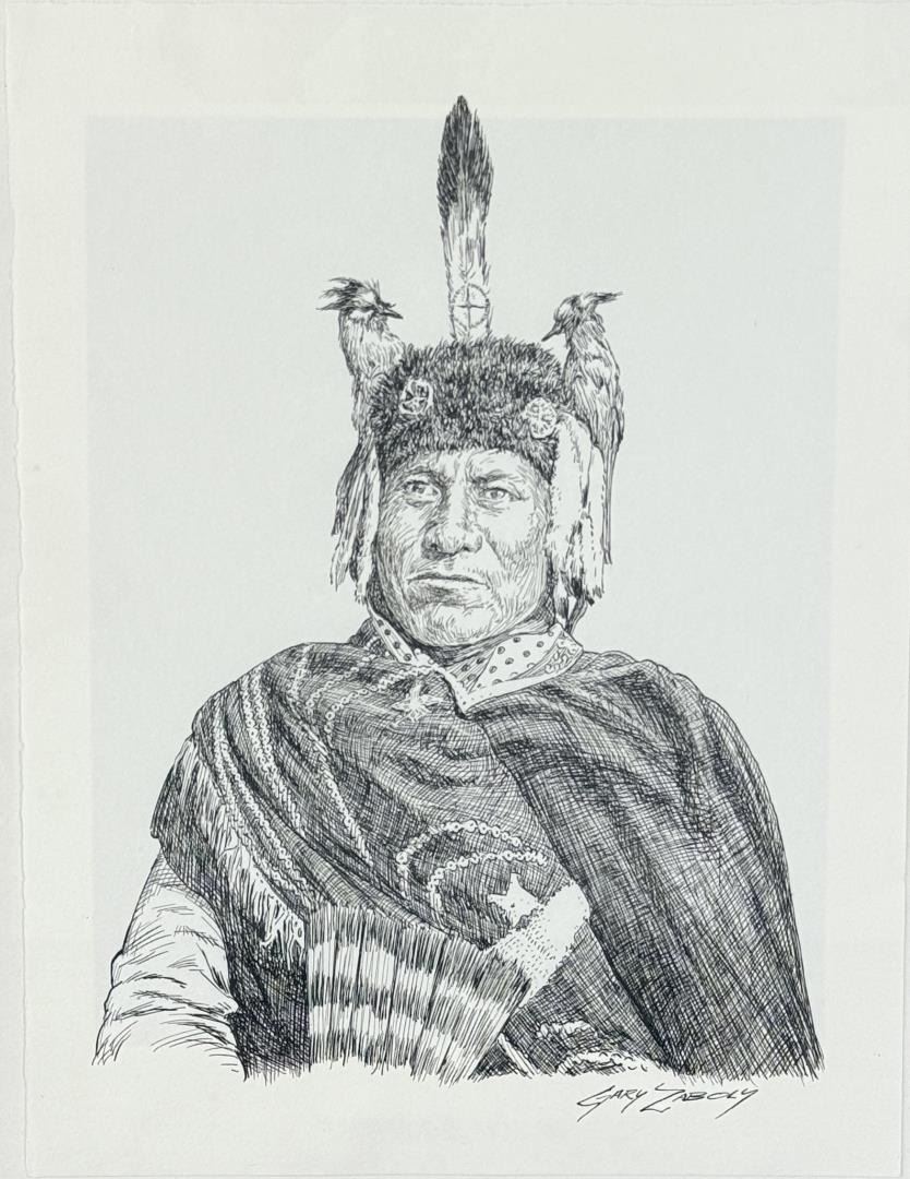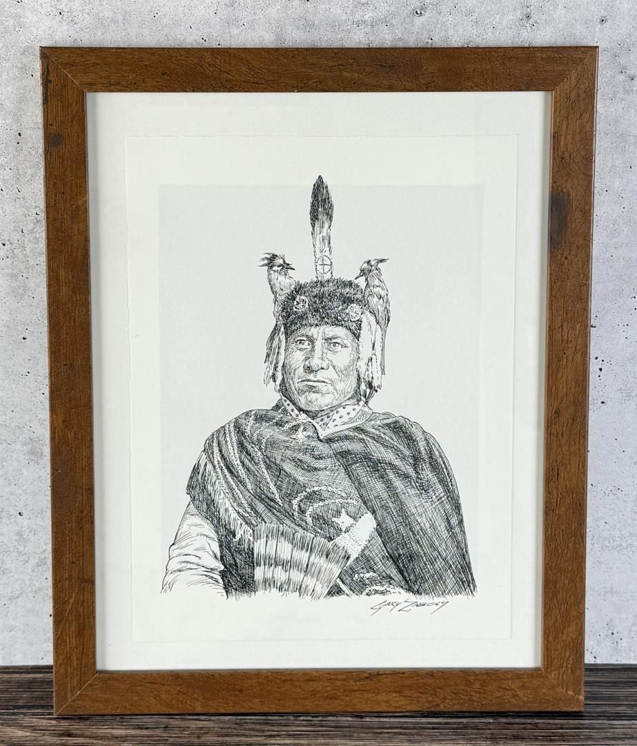 Title is Two Moon, Cheyenne Victor Over Custer. 9" by 12" unframed. 12 1/2" by 15 1/2" framed. Gary Zaboly (late 20th century) was active/lived in Texas. Gary Zaboly is known for Painting.