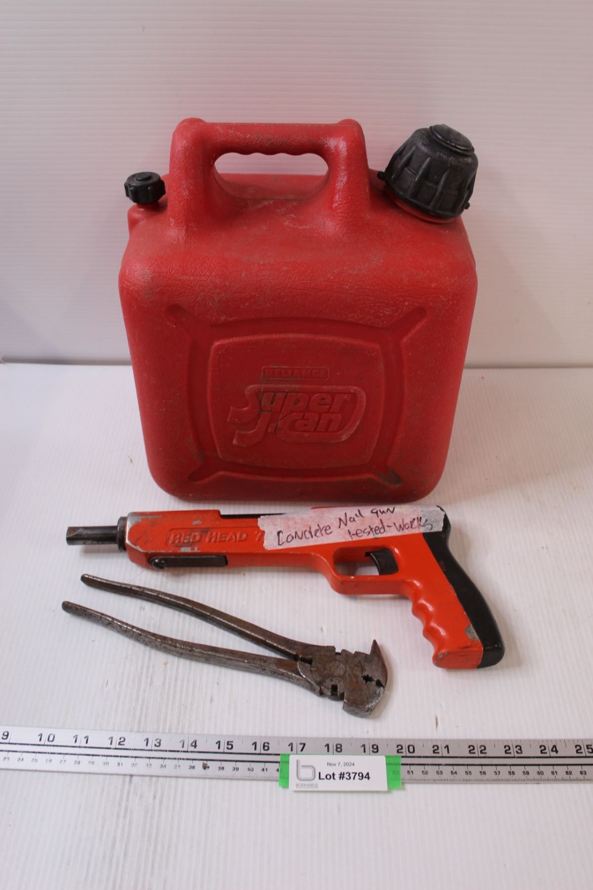 Gas Can, Concrete Nail Gun - Works; Fencing Plyer