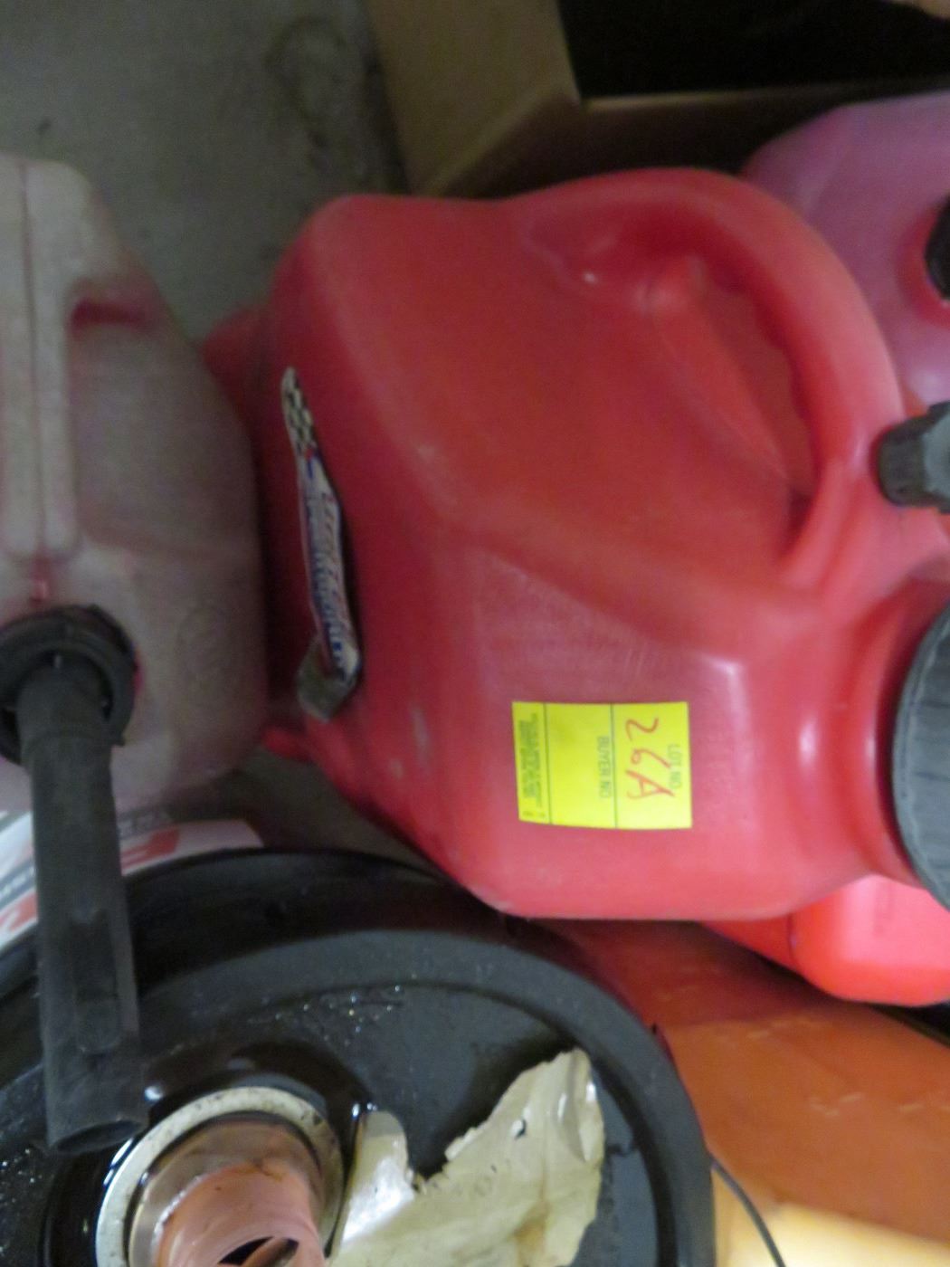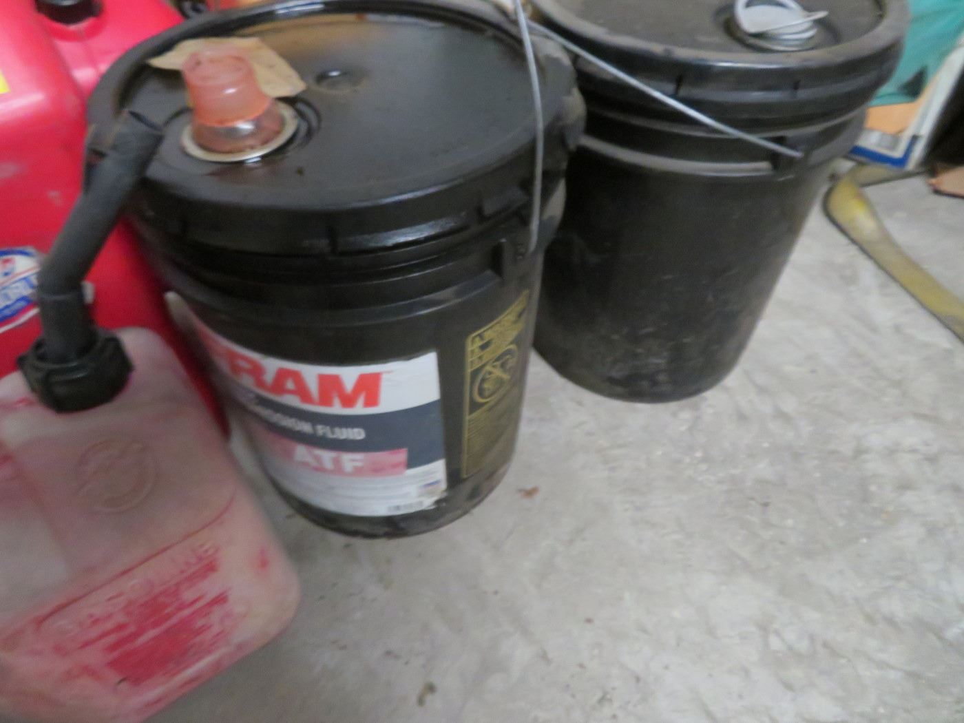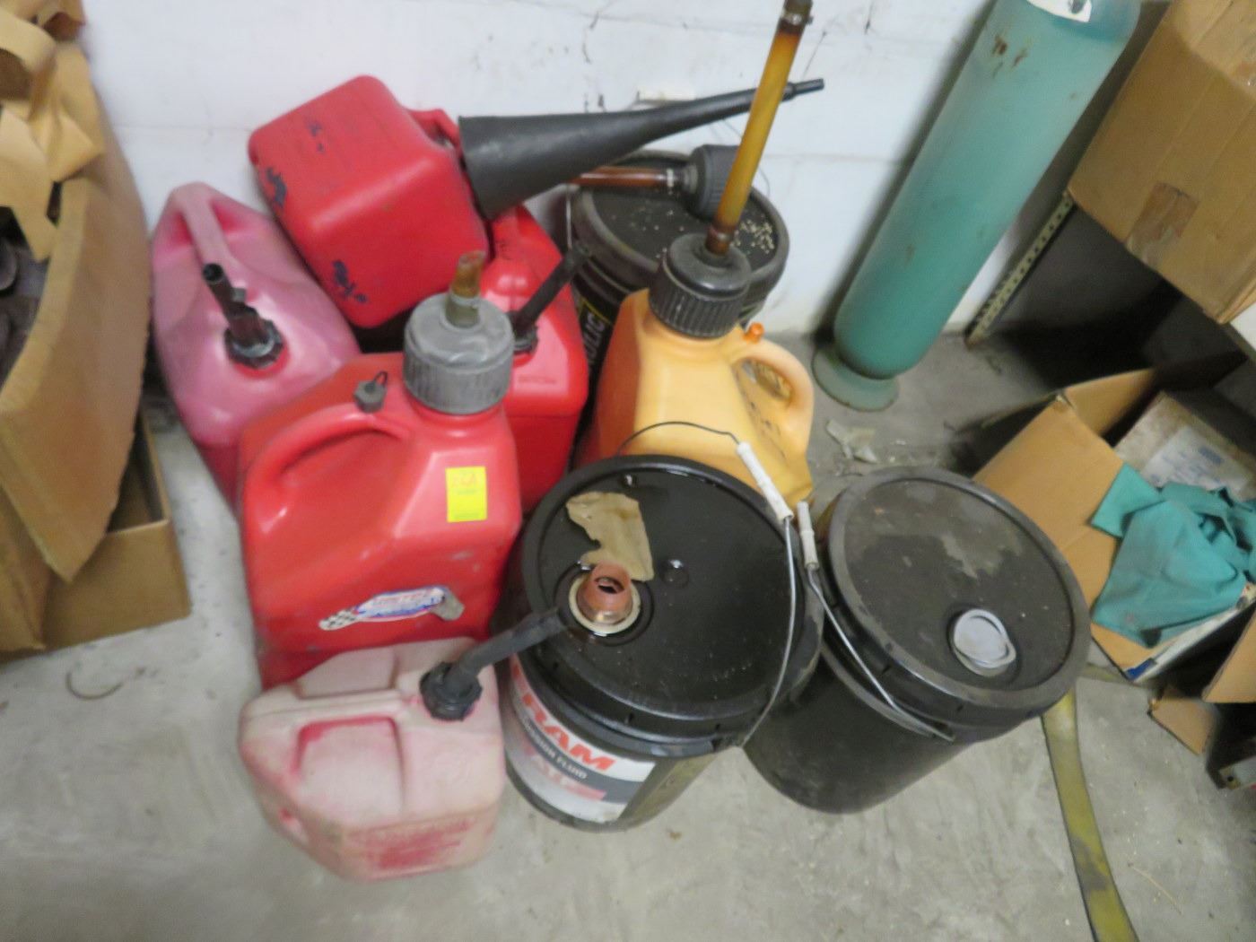 Gas/Diesel Cans w/Fuel Hydraulic Oil and Transmission Fluids