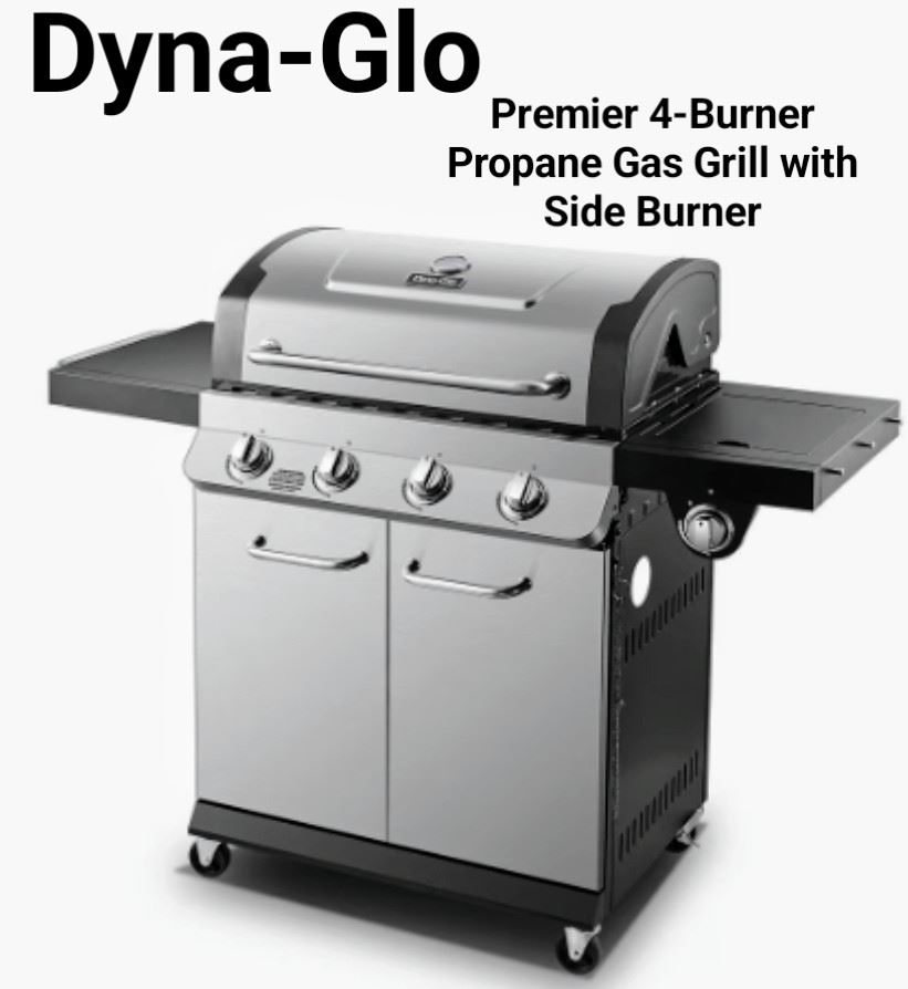 Dyna-Glo 4-burner propane grill with additional side burner, ideal for outdoor cooking, new.