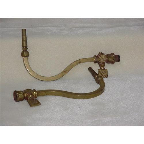 <table width="100%" border="0" cellspacing="0" cellpadding="4"><tr><td><em> </em></td></tr><tr> <td width="100%"> A pair of Victorian Gas light jet arms, 8" long. Square brass pipe extends from the wall and the gas is controlled with the turn key to adjust the amount of gas to provide light. Turn key works and they can be electrified to become wall lights once again in a modern home, They will polish beautifully and be a great addition to a Victorian interior. (2) </td></tr><tr> <td> </td></tr><tr> <td>Reference #: 4922_99</td></tr><tr><td>Condition:good</td></tr><tr><td>Year:turn of the 20th century</td></tr><tr><td>Title:Gas Light Jets SKU 4922</td></tr><tr><td>Location:Fort Lauderdale, Florida</td></tr></table>