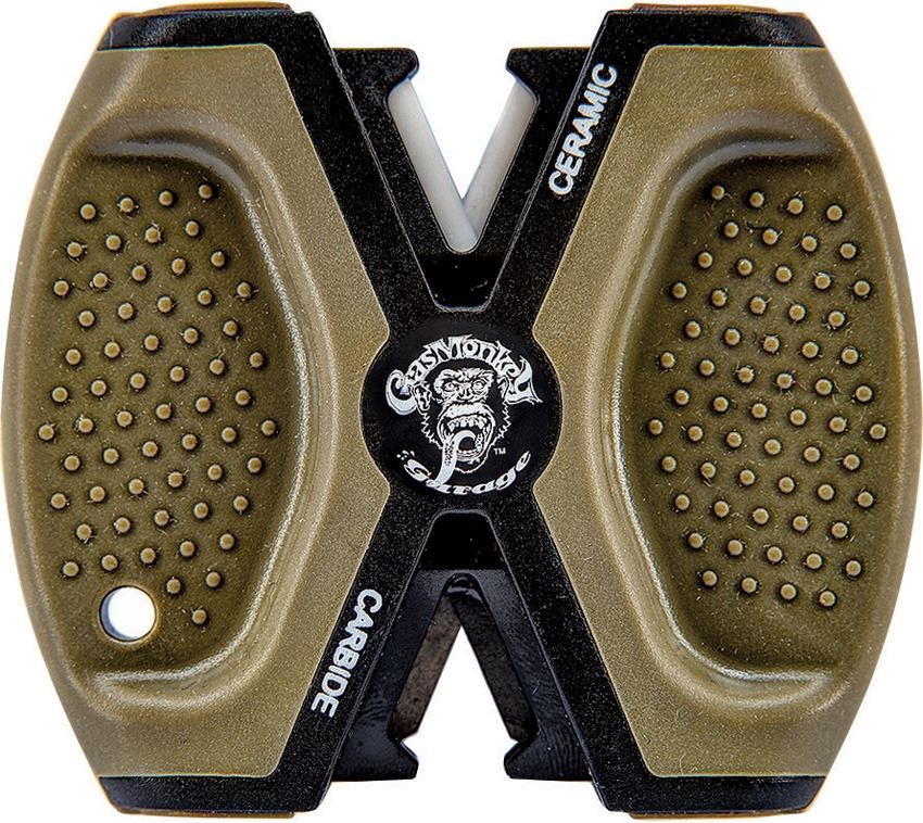 Dimensions: 2.5" x 3"; Color: Green; Other Info: Carbide blades restore edge quickly. Ceramic rods sharpen serrations and finish plain edges. Preset angles. Slip resistant TPR grip.