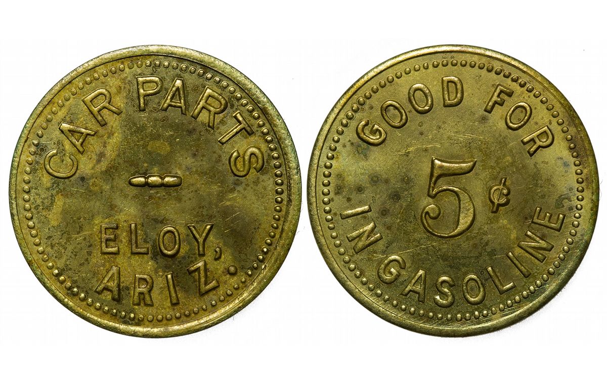This is a GF 5c gasoline token labeled CAR Parts in Eloy, - HKA#65844