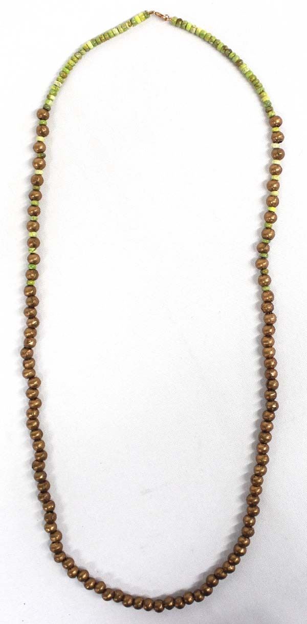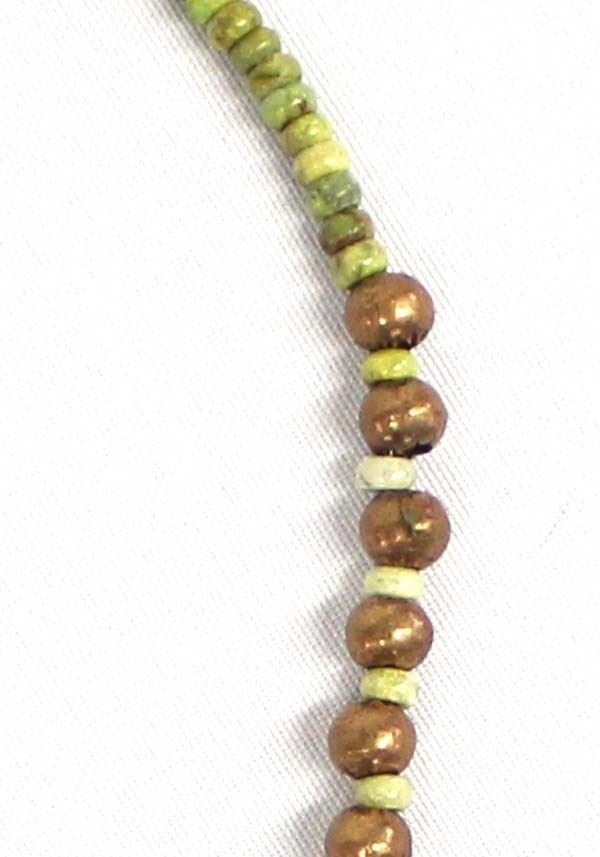 Gaspeite and Copper Bead Necklace, measures 32''L end to end, copper clasp