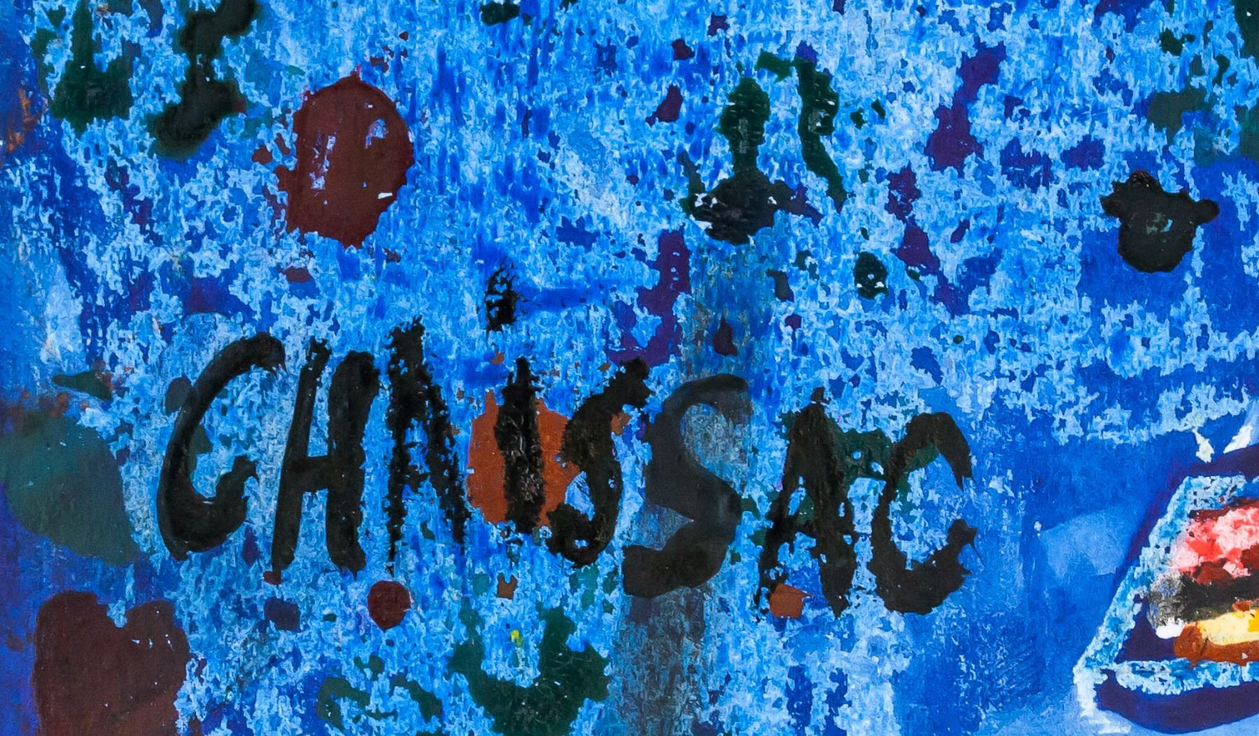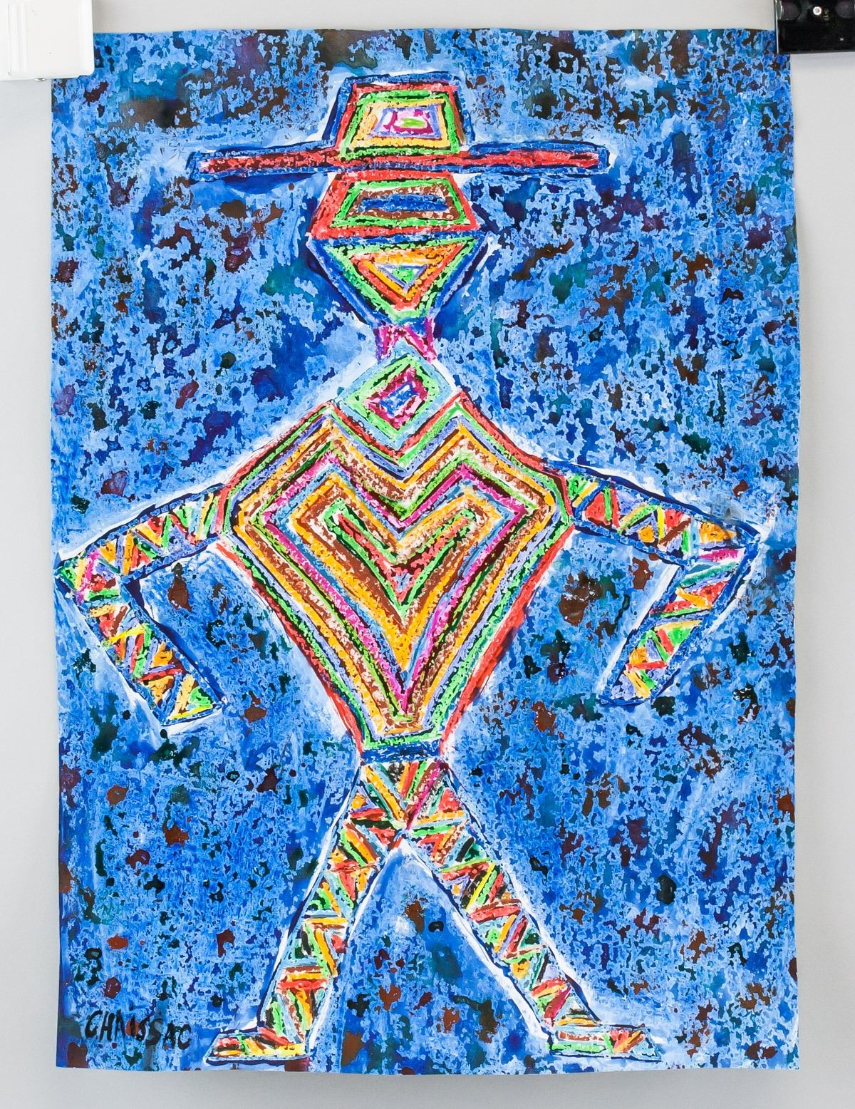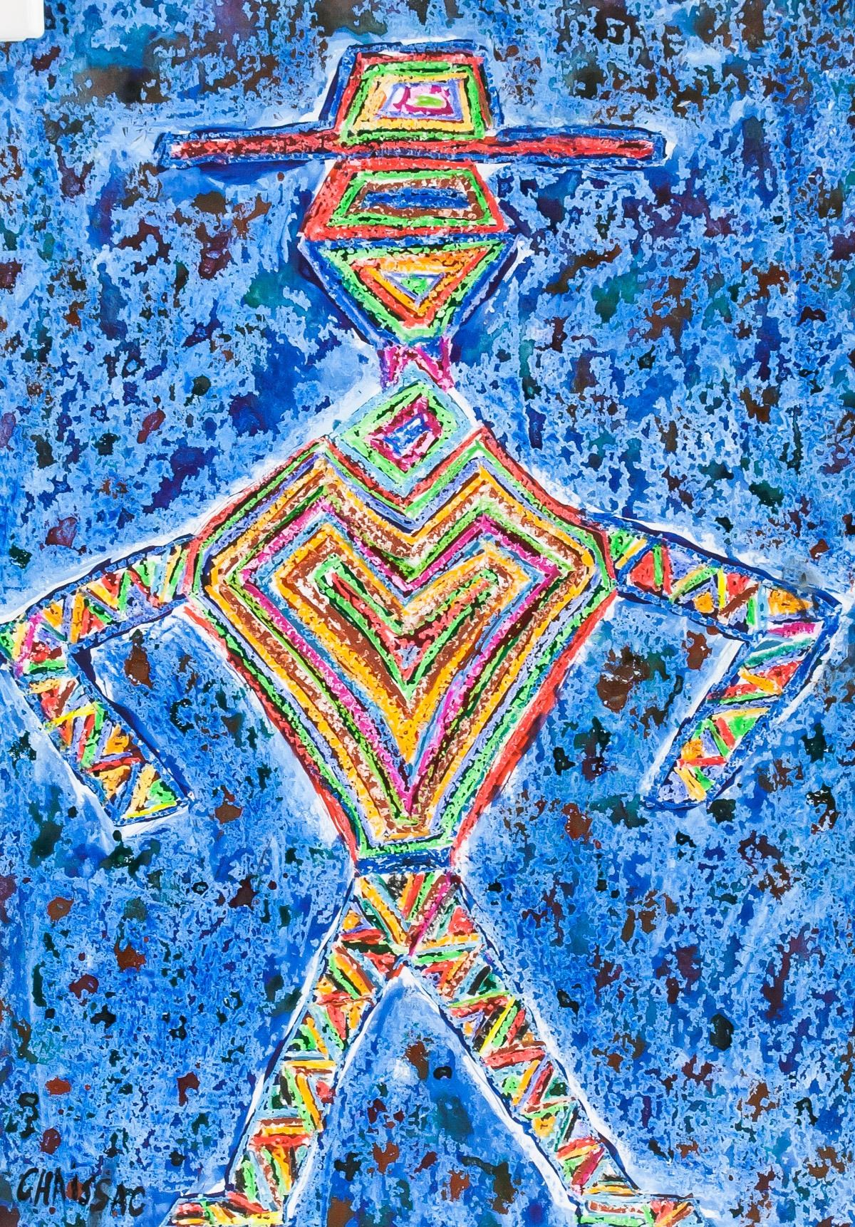 Mixed media on paper. Featuring geometric humaniod figure wearing a hat. Signed "CHAISSAC" in the bottom left corner. Attributed to Gaston Chaissac (1910-1964, French). 46 x 32 cm (18 x 12.5 inches). Provenance: This lot carries limited provenance from a Southern Ontario estate