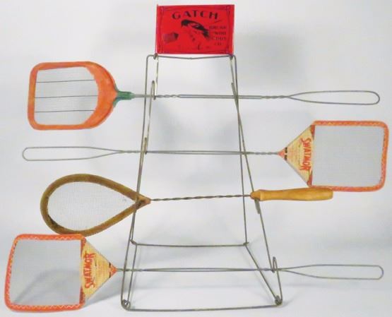 Gatch Brush and Wire Goods Co. Store Display. Omes with collection of 4 different fly swatters. Very good condition. 9 1/2 X 17 X 8 inches.