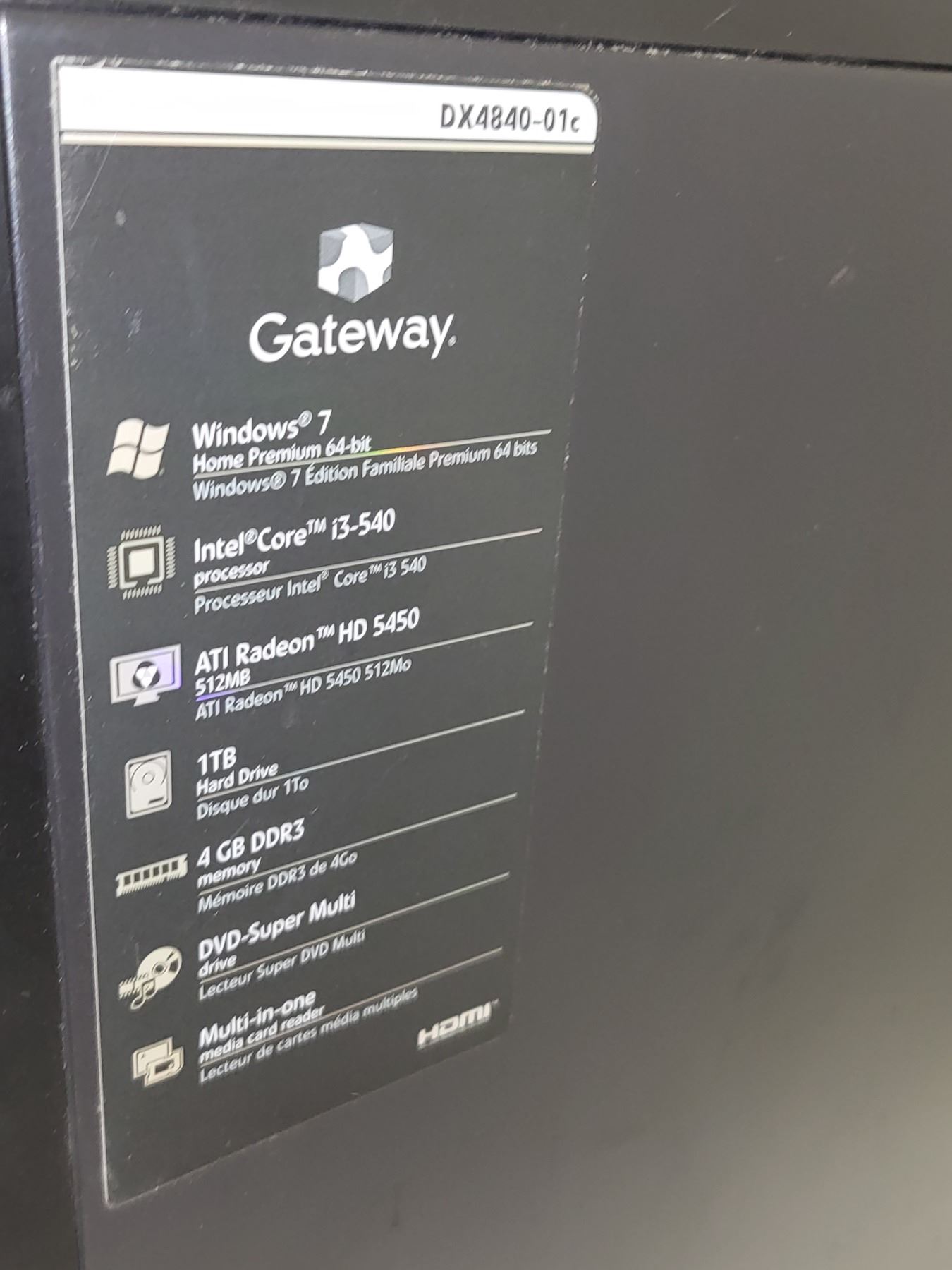 Gateway Desktop Computer - asis - Windows 7 Home Premium 64 bit Operting System; intel core processor, ati radion tm hd-540, 1TB hard drive, 4 GB DDR3 Memory, DVD Super Multi Drive