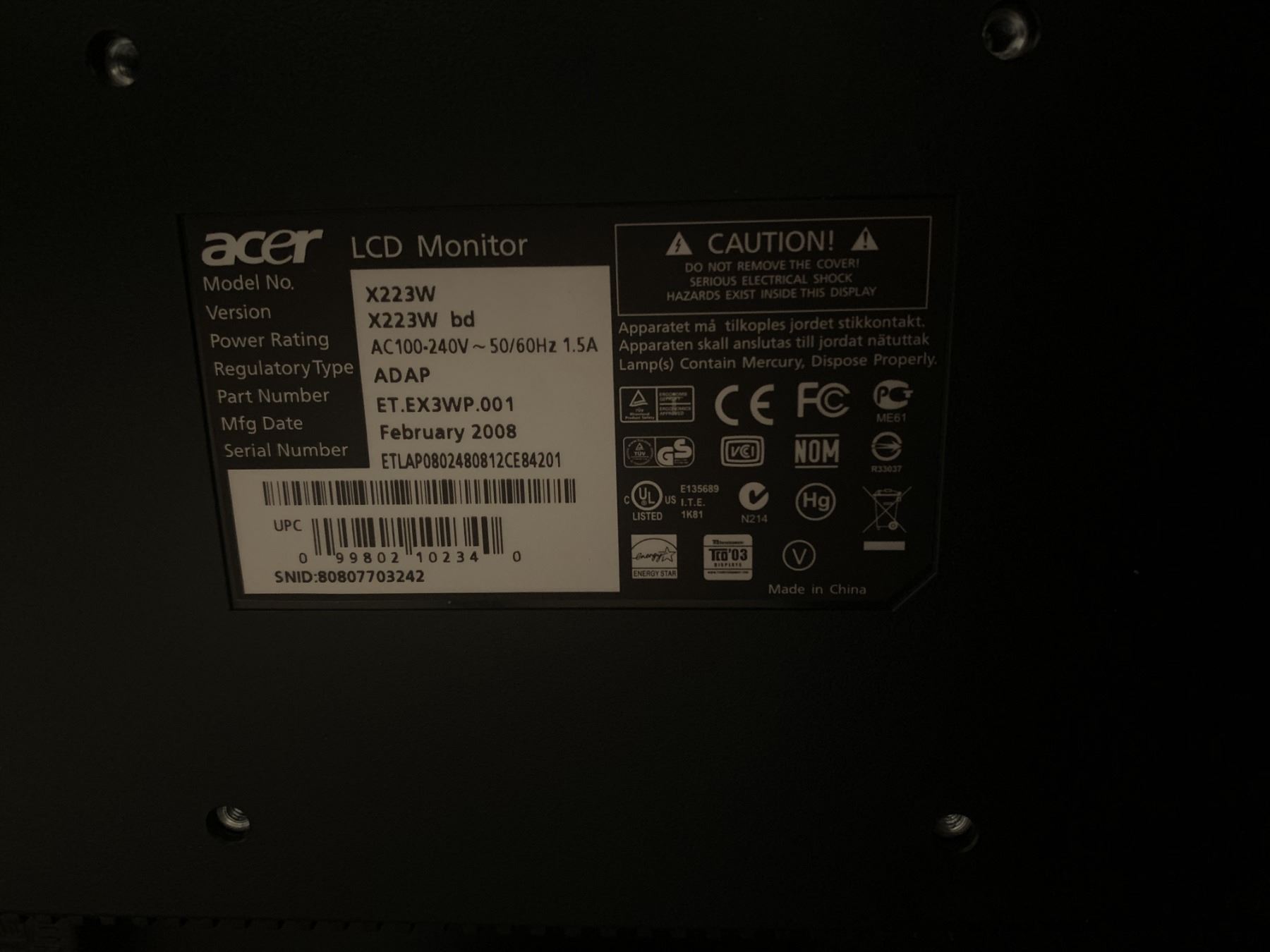 Gateway Desktop PC (DX4860), Acer LCD Monitor (X223W), 2 x Computer Mice, and Keyboard (KB39211)