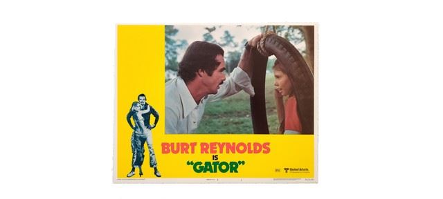 Gator (Levy-Gardner-Laven,1976) lobby card. Thriller. Starring Burt Reynolds, Jack Weston, Lauren Hutton, Jerry Reed, Alice Ghostley, Dub Taylor, Mike Douglas, William Engesser, Burton Gilliam, John Steadman, Lori Futch, Stephanie Burchfield, Dudley Remus, J. Don Ferguson, John Rousaris, Patrick Moody. Directed by Burt Reynolds. Very minor edge wear. Excellent. (11"x14").