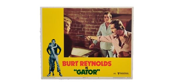 Gator (Levy-Gardner-Laven,1976) lobby card. Thriller. Starring Burt Reynolds, Jack Weston, Lauren Hutton, Jerry Reed, Alice Ghostley, Dub Taylor, Mike Douglas, William Engesser, Burton Gilliam, John Steadman, Lori Futch, Stephanie Burchfield, Dudley Remus, J. Don Ferguson, John Rousaris, Patrick Moody. Directed by Burt Reynolds. Very minor edge wear. Excellent. (11"x14").