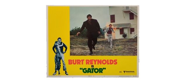Gator (Levy-Gardner-Laven,1976) lobby card. Thriller. Starring Burt Reynolds, Jack Weston, Lauren Hutton, Jerry Reed, Alice Ghostley, Dub Taylor, Mike Douglas, William Engesser, Burton Gilliam, John Steadman, Lori Futch, Stephanie Burchfield, Dudley Remus, J. Don Ferguson, John Rousaris, Patrick Moody. Directed by Burt Reynolds. Very minor edge wear. Excellent. (11"x14").