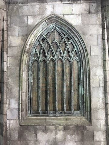 Filming miniature used in the Gatorade commercial starring New York Yankees Derek Jeter. This model features the Cathedral Spire that houses Gargoyles that come to life to play baseball against Derek Jeter. Fabricated from wood, plastic, resin with acetate stained glass windows. Original Pencil on paper drafted construction drawings of Cathedral Spire. Drawn by New Deal Studios co-founder, Matthew Gratzner. (52" tall x 26" wide) 1:10 ratio. This incredible, handmade miniature is from the celebrated collection of Academy Award winning New Deal Studios. New Deal Studios is a 21st Century Media Studio, unlike any in the world. A full-service film production and visual effects studio, with over 20 years of iconic imagery, New Deal Studios develops, designs, prototypes, and creates all types of high caliber media projects. Founded in 1995 by Matthew Gratzner, Ian Hunter and Shannon Blake Gans, this artist owned and operated independent studio, born in the heyday of visual effects, has truly evolved into the technology driven studio for the future, consistently delivering the perfect marriage of artistry and technology. Award winning credits by New Deal Studios include high-profile projects such as Dark Knight Rises, Hugo, The Avengers, Oz the Great and Powerful, Iron Man, The Dark Knight, Watchmen, I am Legend, Night at the Museum, Whiteout, 2012, Alice in Wonderland, Inception, Battleship and Interstellar.