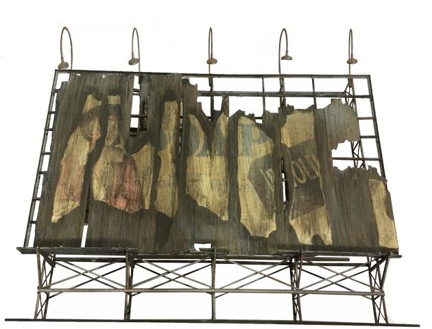 Filming miniature used in the Gatorade commercial starring New York Yankees Derek Jeter. This model is a dilapidated billboard mounted on the top edge of the Stadium model. Features the advertisement for Soap. Fabricated from wood and styrene and includes a wall mount base. 20" wide x 22" tall. 1:16 ratio. This incredible, handmade miniature is from the celebrated collection of Academy Award winning New Deal Studios. New Deal Studios is a 21st Century Media Studio, unlike any in the world. A full-service film production and visual effects studio, with over 20 years of iconic imagery, New Deal Studios develops, designs, prototypes, and creates all types of high caliber media projects. Founded in 1995 by Matthew Gratzner, Ian Hunter and Shannon Blake Gans, this artist owned and operated independent studio, born in the heyday of visual effects, has truly evolved into the technology driven studio for the future, consistently delivering the perfect marriage of artistry and technology. Award winning credits by New Deal Studios include high-profile projects such as Dark Knight Rises, Hugo, The Avengers, Oz the Great and Powerful, Iron Man, The Dark Knight, Watchmen, I am Legend, Night at the Museum, Whiteout, 2012, Alice in Wonderland, Inception, Battleship and Interstellar.