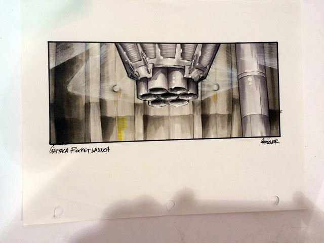 Original Concept Painting of Rocket in Silo just before launch. This concept was used as the bases for the miniature build that was used for the climactic rocket launch in the film. Water color maker, ink, and gauche on paper. Drawn by New Deal Studios co-founder, Matthew Gratzner. 8.5" x 11". This painting is from the celebrated collection of Academy Award winning New Deal Studios. New Deal Studios is a 21st Century Media Studio, unlike any in the world. A full-service film production and visual effects studio, with over 20 years of iconic imagery, New Deal Studios develops, designs, prototypes, and creates all types of high caliber media projects. Founded in 1995 by Matthew Gratzner, Ian Hunter and Shannon Blake Gans, this artist owned and operated independent studio, born in the heyday of visual effects, has truly evolved into the technology driven studio for the future, consistently delivering the perfect marriage of artistry and technology. Award winning credits by New Deal Studios include high-profile projects such as Dark Knight Rises, Hugo, The Avengers, Oz the Great and Powerful, Iron Man, The Dark Knight, Watchmen, I am Legend, Night at the Museum, Whiteout, 2012, Alice in Wonderland, Inception, Battleship and Interstellar.