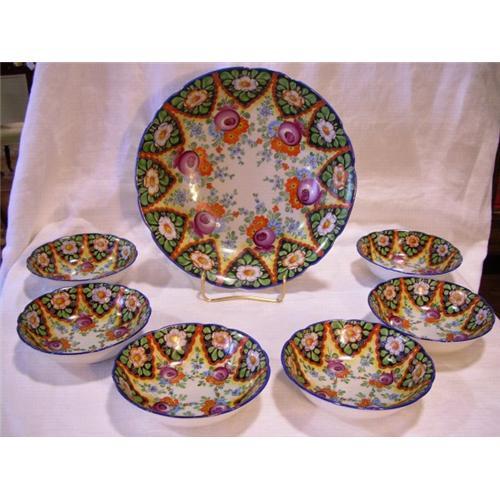 <tr><td>Title:Gaudy Czech 7 Pc. Berry Bowl Set, Eichwald</td></tr>