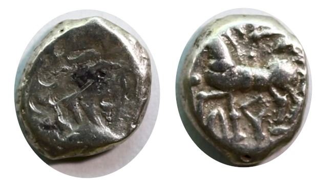 Gaul (Central), Lingones, Silver Quinarius, Kaletedoy, Circa 120/100-50 BC, Obv. Helmeted head left.