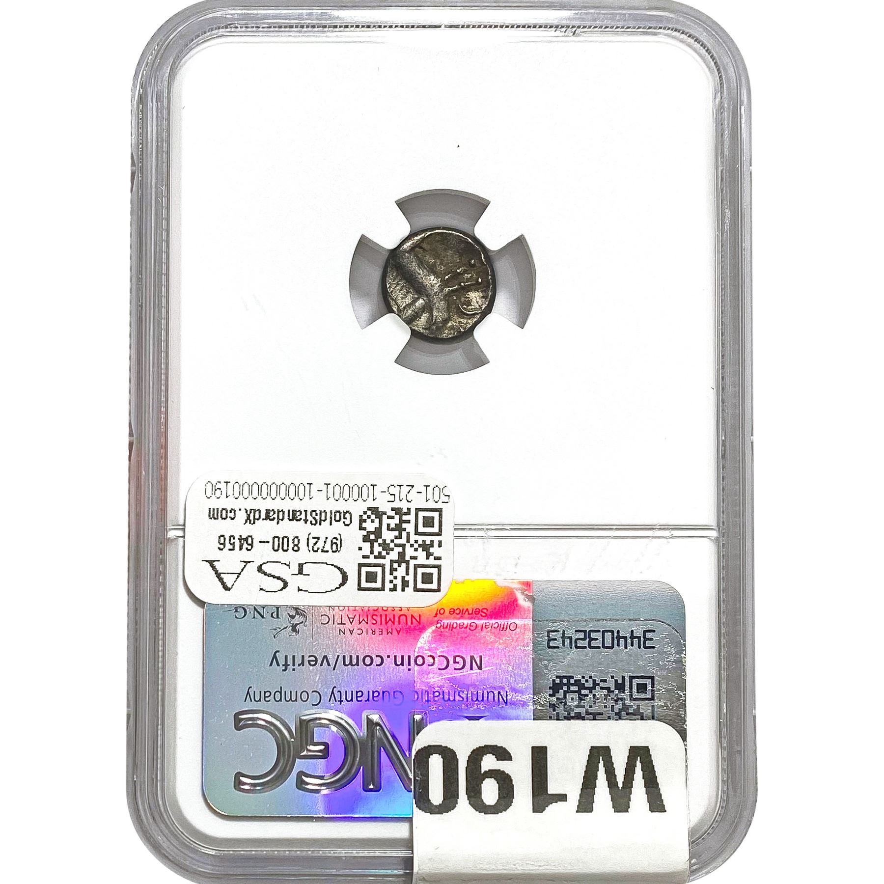 COINS AND CURRENCY LISTED IN GSA’S CATALOG AS GRADED AND ENCAPSULATED BY PCGS, NGC, ANACS, ICG, PCGS CURRENCY, PMG, PCGS BANKNOTE GRADING, CMC OR ANY OTHER THIRD-PARTY GRADING SERVICE ARE LIKEWISE SOLD “AS-IS” EXCEPT AS EXPRESSLY SET FORTH HEREIN. ALL THIRD-PARTY GRADING SERVICE GUARANTEES, INCLUDING AUTHENTICITY, ARE THE SOLE RESPONSIBILITY OF THE THIRD-PARTY GRADING SERVICE AND NOT WARRANTIES OR GUARANTEES OF GSA. BIDDERS SHOULD CONTACT THESE THIRD-PARTY GRADING SERVICES DIRECTLY WITH RESPECT TO ANY CLAIMS OR QUESTIONS THEY MAY HAVE CONCERNING THEIR GUARANTEES AND WARRANTIES. BIDDERS ACKNOWLEDGE AND AGREE THAT AUCTIONEER IS NOT BOUND BY OR LIABLE FOR ANY OPINION OR CERTIFICATION BY ANY THIRD-PARTY GRADING SERVICE. REMOVAL OF A PRODUCT FROM ITS PROTECTIVE CASING OR HOLDER OR ALTERATION OF ANY COIN HOLDER WAIVES ALL RIGHTS CONCERNING THE PRODUCT CONTAINED THEREIN.
