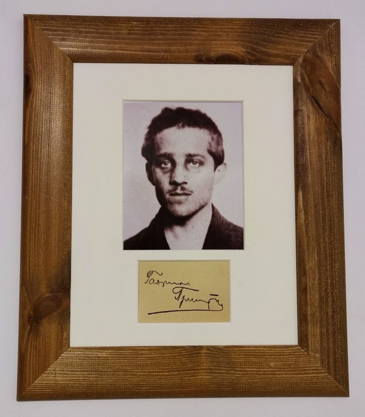 A Gavrilo Princip signature mounted and framed. Supplied with coa.
