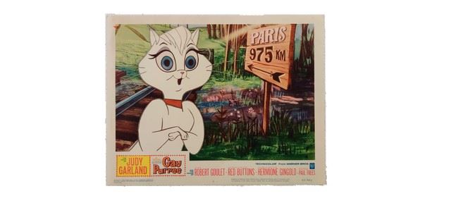 Gay Purr-ee (United Productions of America, Warner Bros., 1962) lobby card. Animation, Comedy, Musical. Starring Judy Garland, Robert Goulet, Red Buttons, Paul Frees, Hermione Gingold. Directed by Abe Levitow. Very minor edge wear. Excellent. (11"x14")