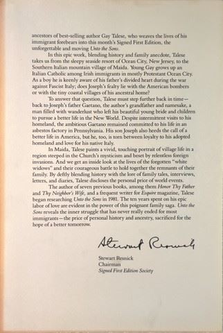 Unto the Sons (The Franklin Library, 1992) first edition leatherbound copy, printed exclusively for the Signed First Edition Society and signed by author Gay Talese. 635 Pages.
