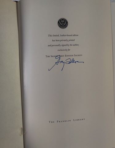 Unto the Sons (The Franklin Library, 1992) first edition leatherbound copy, printed exclusively for the Signed First Edition Society and signed by author Gay Talese. 635 Pages.