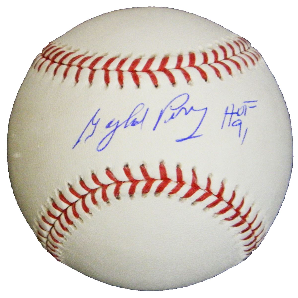 Gaylord Perry signed Rawlings official MLB baseball with 'HOF 91' inscription. Item comes with a Schwartz Sports Memorabilia tamper-proof numbered hologram and Certificate of Authenticity which can be verified online.