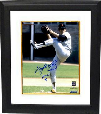 Gaylord Perry was elected to the Baseball Hall of Fame in 1991. Perry won 314 games over a 22-year career starting in 1962. Perry, a five-time All-Star, was the first pitcher to win the Cy Young Award in each league, winning it in the American League in 1972 with the Cleveland Indians and in the National League in 1978 with the San Diego Padres. Gaylord Perry has hand autographed this San Francisco Giants 8x10 Photo with HOF 91 inscription. Steiner Hologram and Certificate of Authenticity. Custom White Mat and Premium Black Color Framed as shown