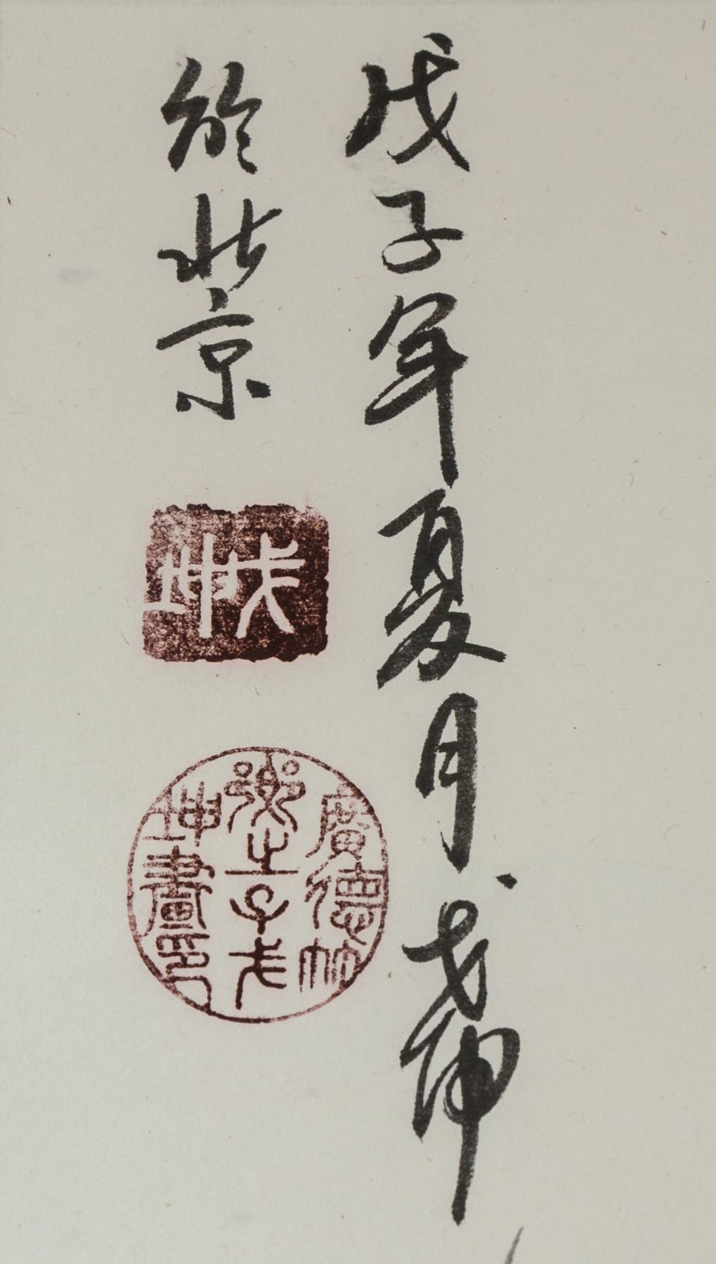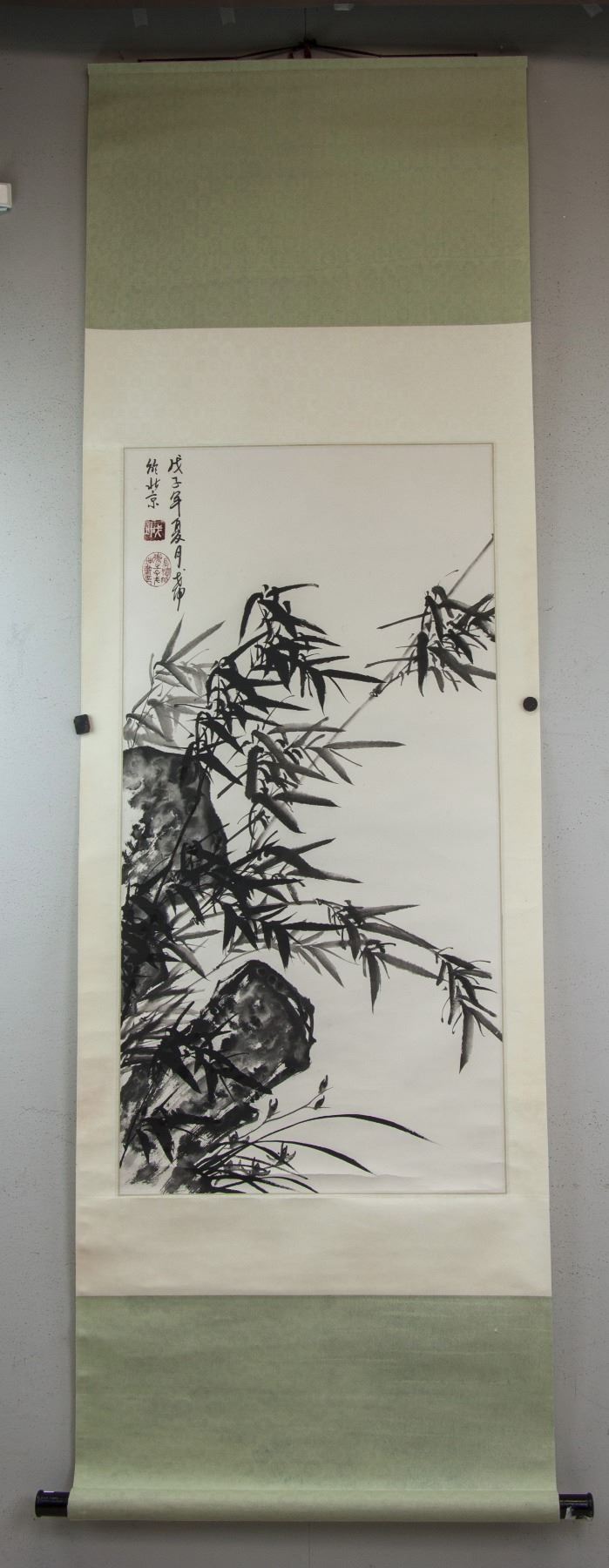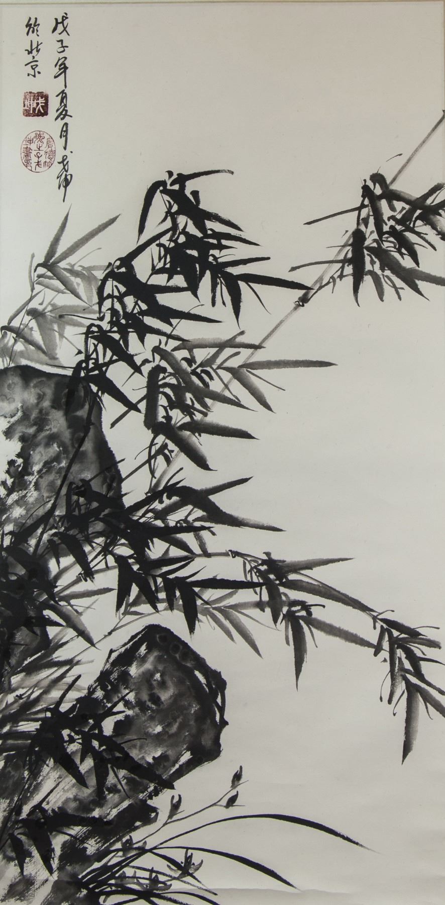 Bamboo and craggy rock; Chinese ink on paper; hanging scroll; signed Ge Kun; inscribed with 2 artist seals; 98 cm x 50 cm