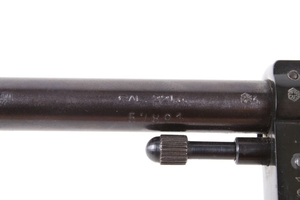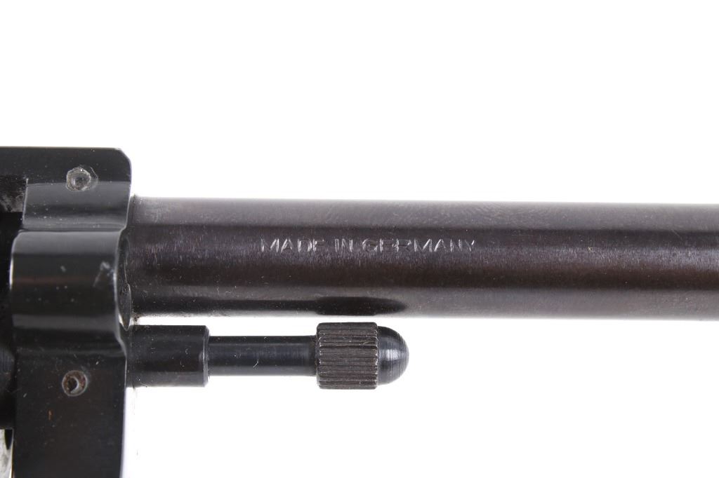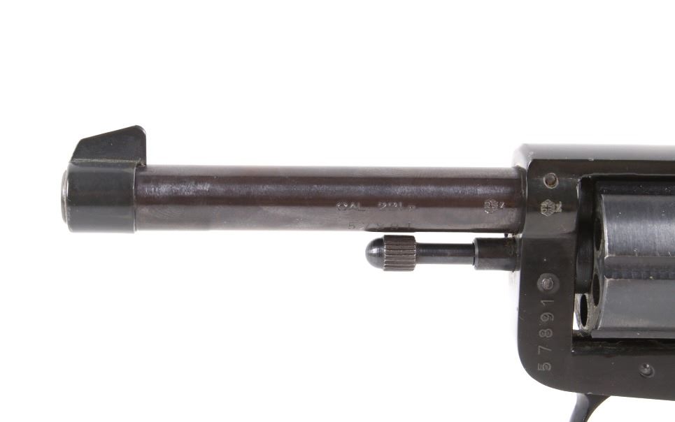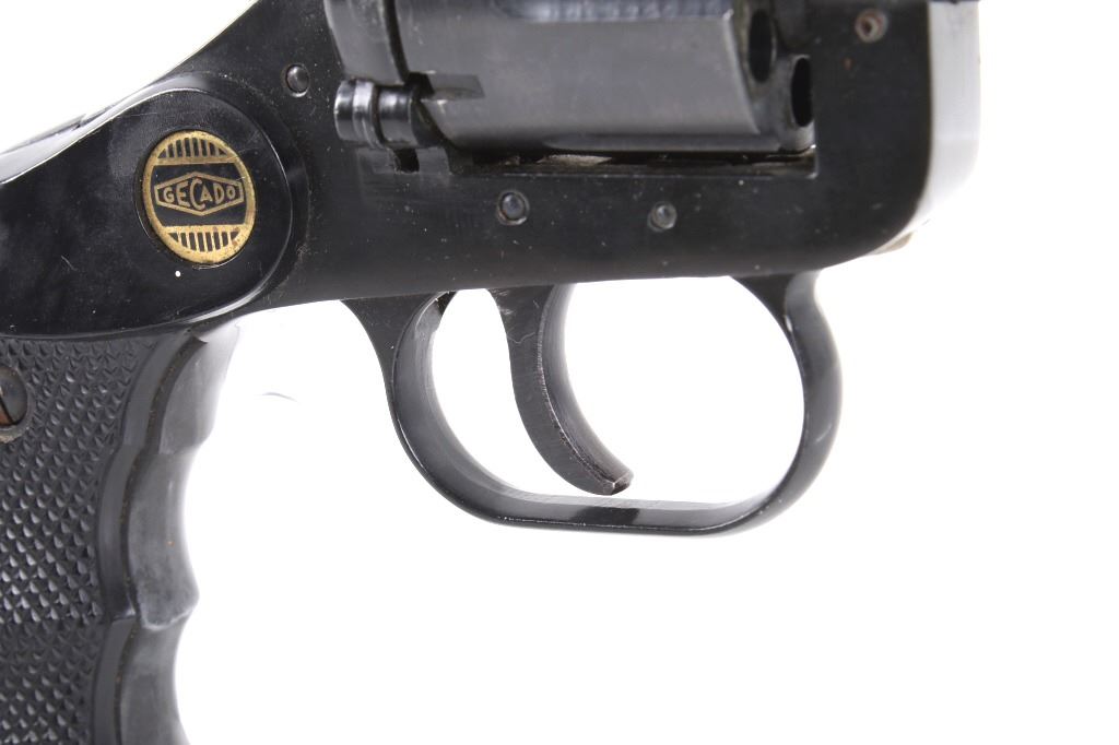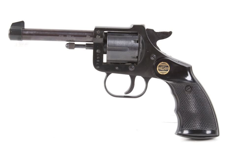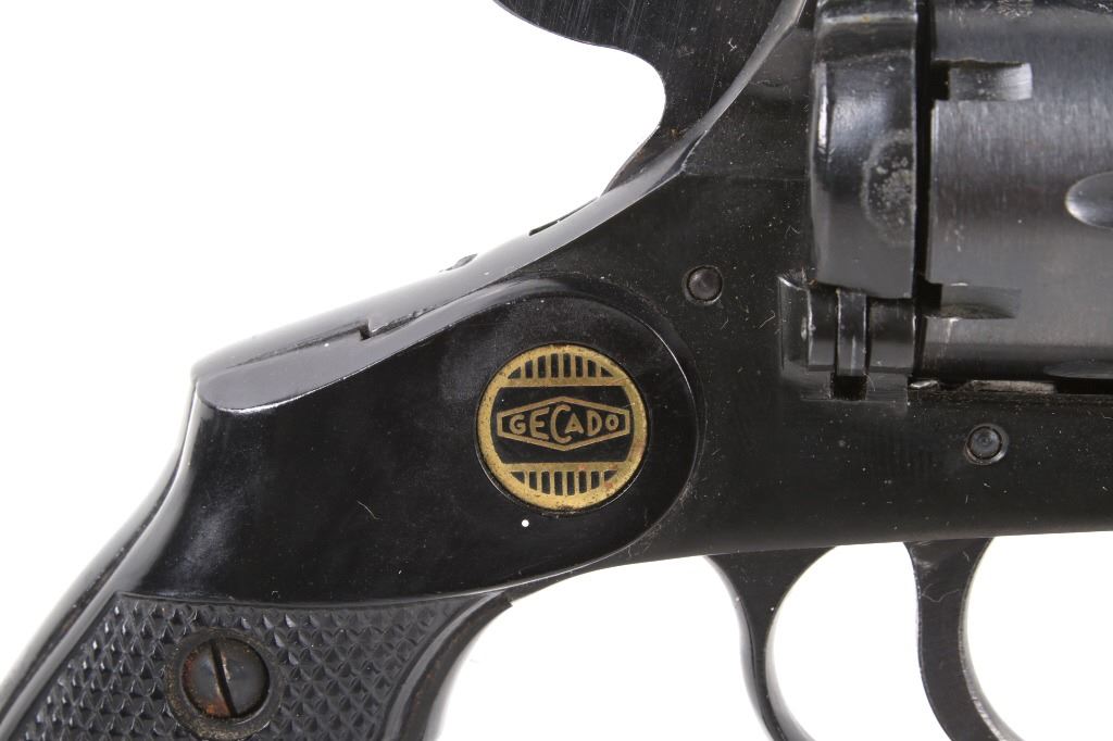 Included in this lot is a Gecado double action .22 Long Rifle caliber revolver. This revolver utilizes a 3 5/8” barrel chambered in .22 LR caliber. The left of the barrel is roll stamped “Cal. .22 Lr.” and the serial number. The frame is additionally stamped with the serial number and a cartouche in front of the cylinder. The right of the barrel is also stamped “Made in Germany”. The cylinder features a swing latch to load and unload the revolver. The black plastic grips are in good condition. The double action on this firearm operates as intended. Serial Number: 57891. This is a modern firearm and requires a FFL transfer or NICS background check.