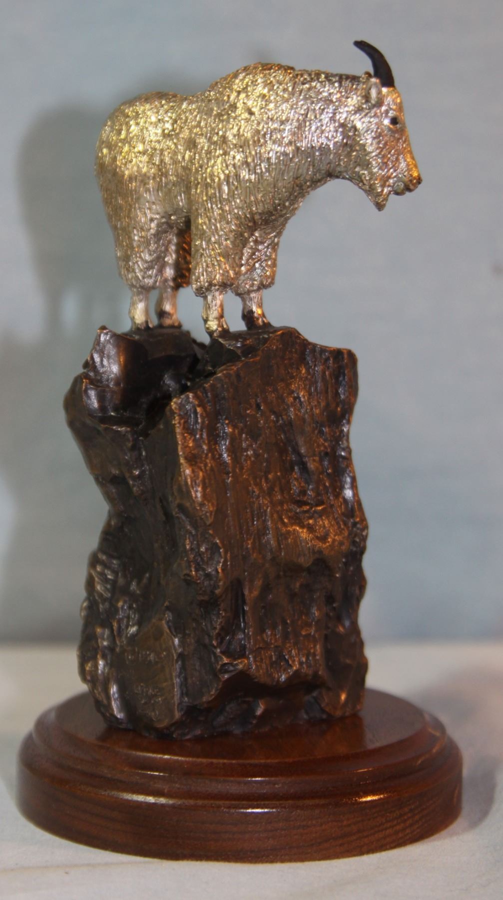 Geffree, Paul sterling silver sculpture, Mountain Goat, 1981, 6" h x 3" x 3"