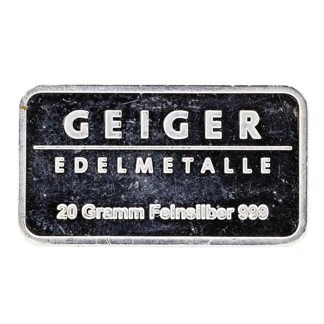 One Geiger 20 Gram .999 Fine Silver Bar.
