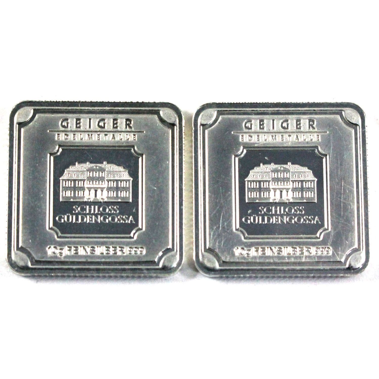 Geiger Edelemetalle 10g .999 Fine Silver Square Bars. 2pcs (TAX Exempt)