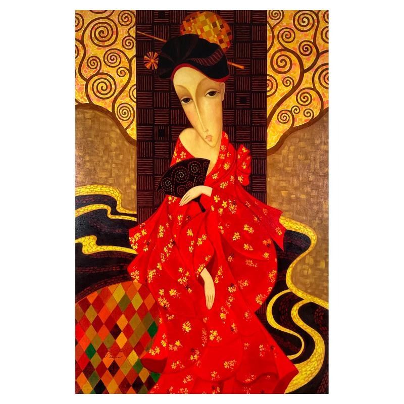 "Geisha In Red" is a limited edition mixed media on canvas, printed in 2007. This piece is HC numbered 1/15 in verso, plate signed and published after his death, bearing the hand signature of the artist's widow, Natasha Smirnov. Includes Letter of Authenticity. Measures approx. 32.5" x 50.5" (image). There are smudges in white border area (bottom) that will be concealed when framed.