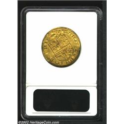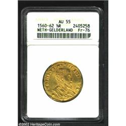 Gelderland. Philip II Gold 1/2 Real D'Or ND (1555-76), Fr76, AU55 ANACS, bright gold with a predictably wavy flan. Important notice: We expect to be auctioning lots at the rate of 200-250 per hour. Sometimes eBay Premier live bid software cannot keep up with that pace, so we strongly recommend that you place a realistic proxy bid now as insurance to avoid disappointment. Also please note that all Heritage/CAA lots purchased through eBay Premier carry a 20% Buyer's Premium. Please make sure you read the Terms and Conditions.