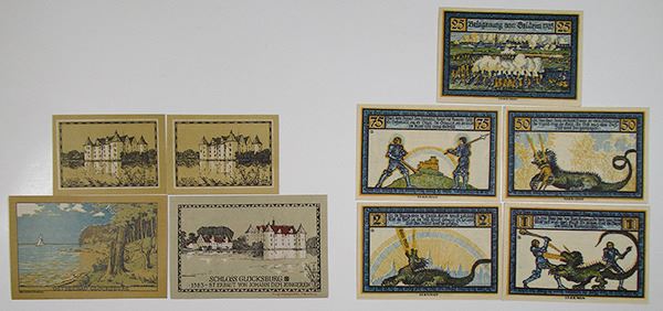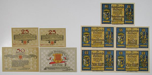 Geldern and GlŸcksburg. 1920. Notgeld Lot of 9 Issued Notes.